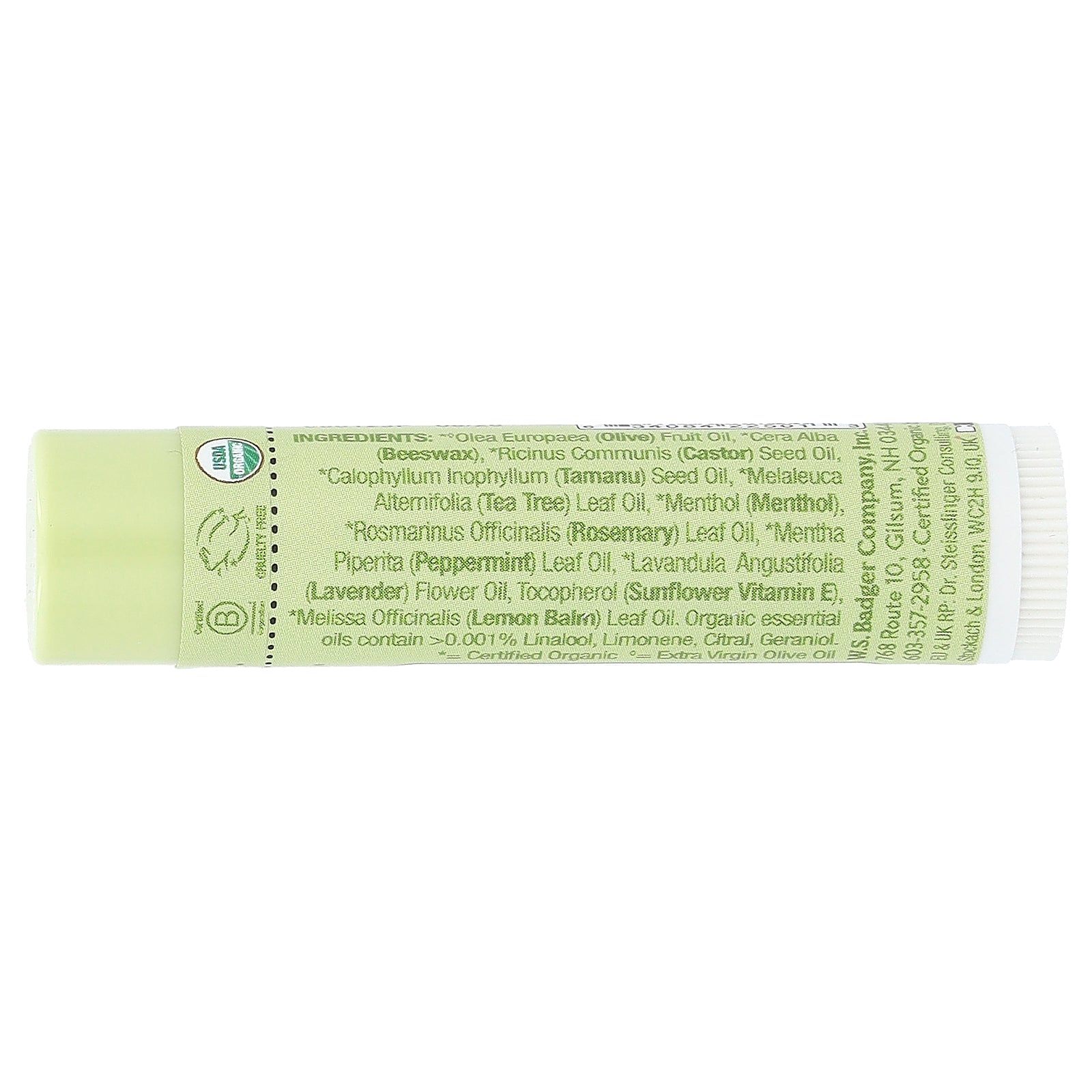 *♦Olea europaea fruit dil, *cera alba (beeswax), *ricinus communis (castor) seed oil *calophyllum inophyllum (tamanu) seed oil, * melaleuca alternifolia (tea tree) leaf oil, *menthol (menthol), *rosmarinus officinalis (rosemary) leaf oil, *mentha piperita (peppermint) leaf oil, *lavandula angustifolia (lavender) flower oil, tocopherol (sunflower vitamin E), *melissa officinalis (lemon balm) leaf oil. Organic essential oil contain >0.001% linalool, limonene, citral, geraniol.