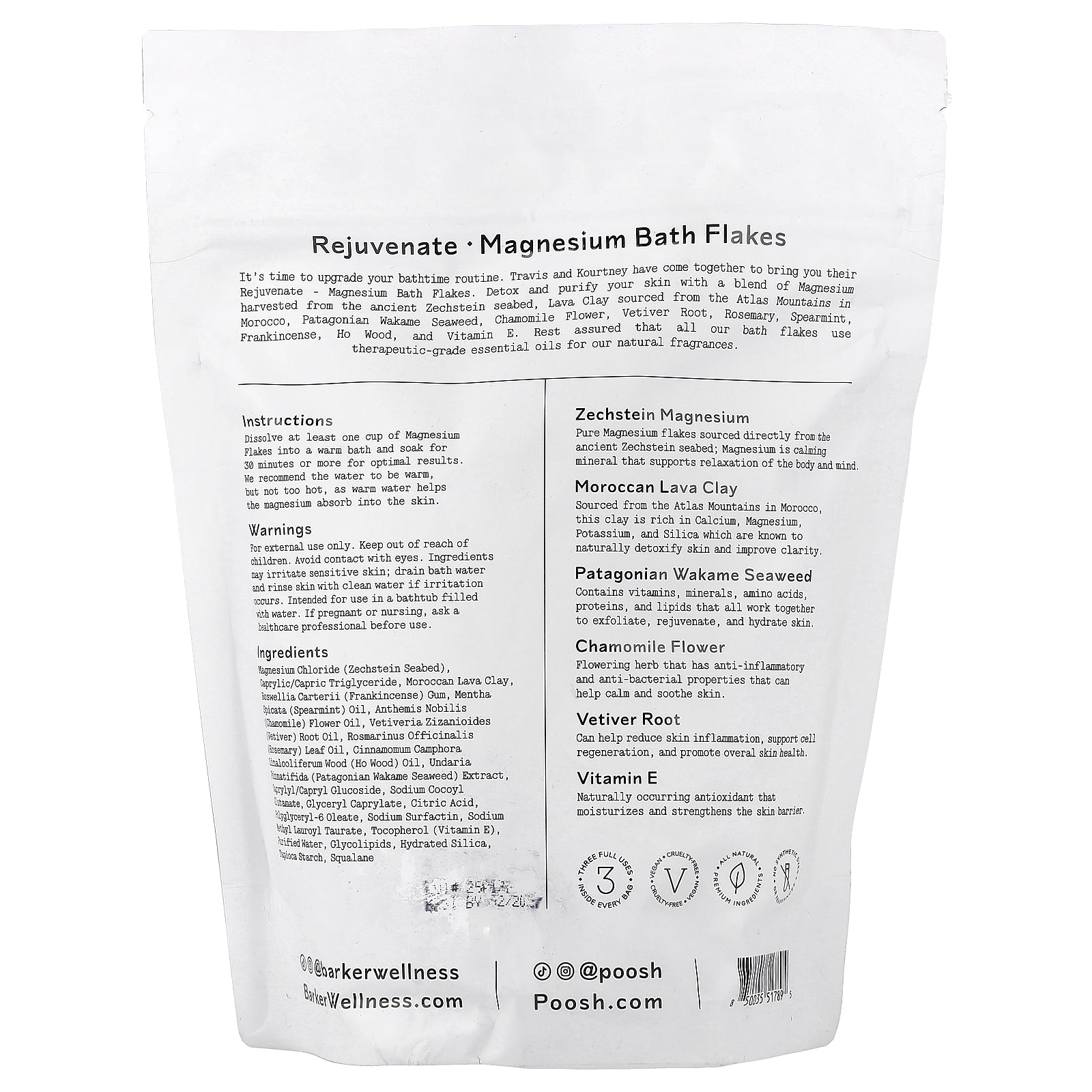 It's time to upgrade your bathtime routine. Travis and Kourtney have come together to bring you their Rejuvenate - Magnesium Bath Flakes. Detox and purify your skin with a blend of Magnesium harvested from the ancient Zechstein seabed, Lava Clay sourced from the Atlas Mountains in Morocco, Patagonian Wakame Seaweed, Chamomile Flower, Vetiver Root, Rosemary, Spearmint, Frankincense, Ho Wood, and Vitamin E. Rest assured that all our bath flakes use therapeutic-grade essential oils for our natural fragrances.