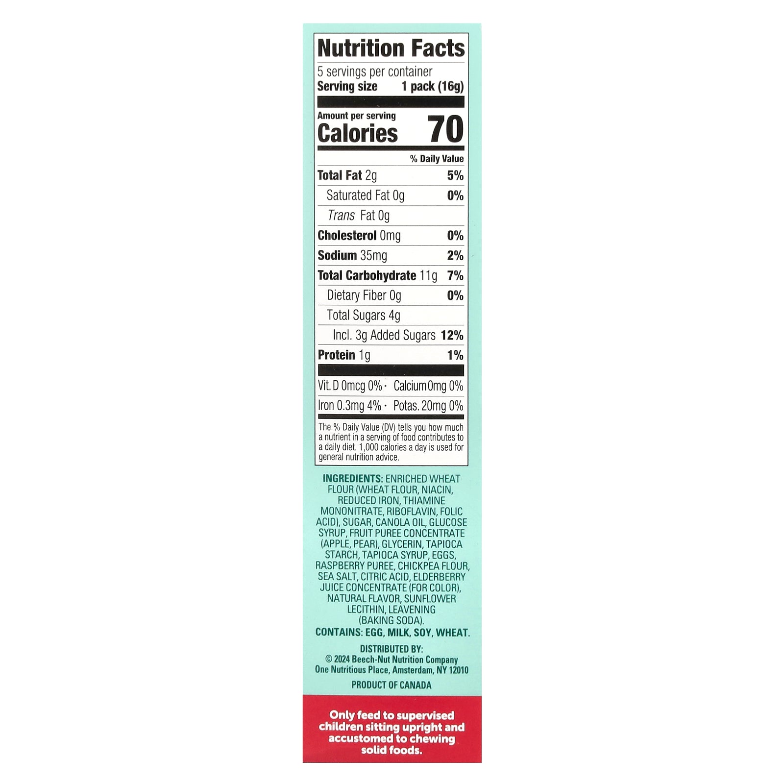 Only feed to supervised children sitting upright and accustomed to chewing solid foods.