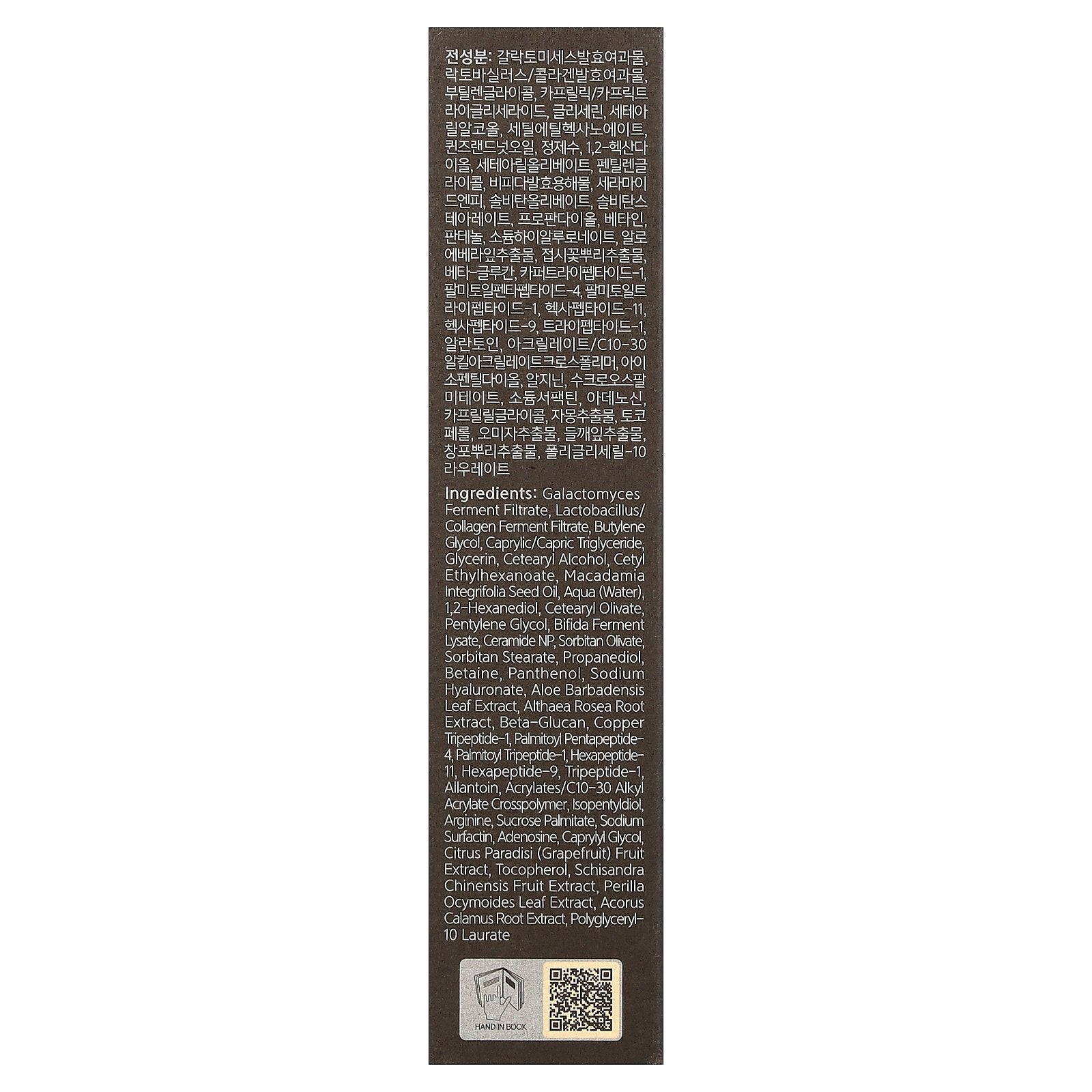 Galactomyces ferment filtrate, lactobacillus/collagen ferment filtrate, butylene glycol, caprylic/capric triglyceride, glycerin, cetearyl alcohol, cetyl ethylhexanoate, macadamia integrifolia seed oil, aqua (water), 1,2-hexanediol, cetearyl olivate, pentylene glycol, bifida ferment lysate, ceramide np, sorbitan olivate, sorbitan stearate, propanediol, betaine, panthenol, sodium hyaluronate, aloe barbadensis leaf extract, althaea rosea root extract, beta-glucan, copper tripeptide-1, palmitoyl pentapeptide- 4, palmitoyl tripeptide-1, hexapeptide- 11, hexapeptide-9, tripeptide-1, allantoin, acrylates/c10-30 alkyl acrylate crosspolymer, isopentyldiol, arginine, sucrose palmitate, sodium surfactin, adenosine, caprylyl glycol, citrus paradisi (grapefruit) fruit extract, tocopherol, schisandra chinensis fruit extract, perilla ocymoides leaf extract, acorus calamus root extract, polyglyceryl-10 laurate.
