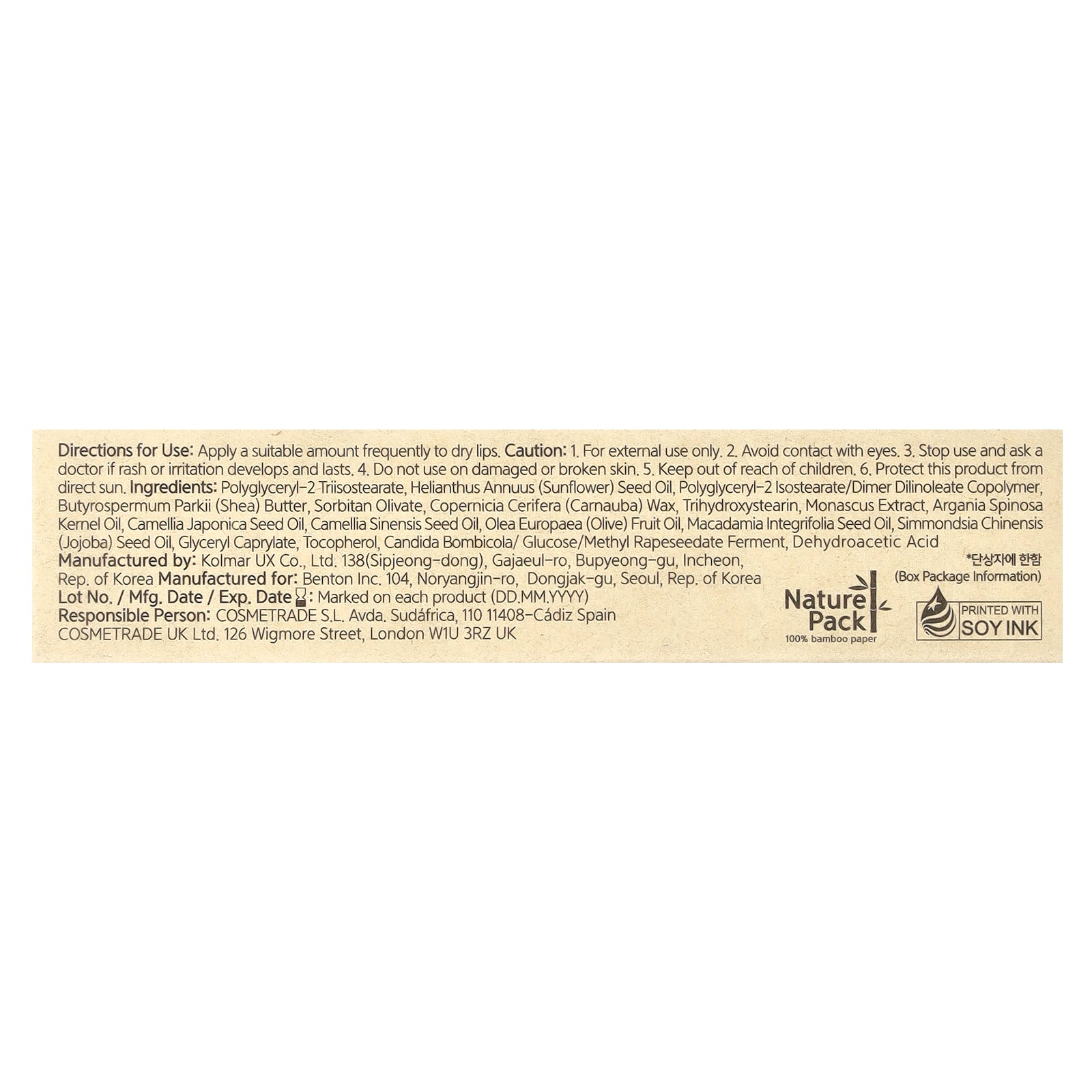 Benton Honest Line presents honest ingredients that you can be reassured of. Formulated with natural- derived ingredients, Benton Honest Lip Balm protects tired lips and helps to keep the lips smooth by firm moisturizing. This Lip Balm is a healthy lip care product.
