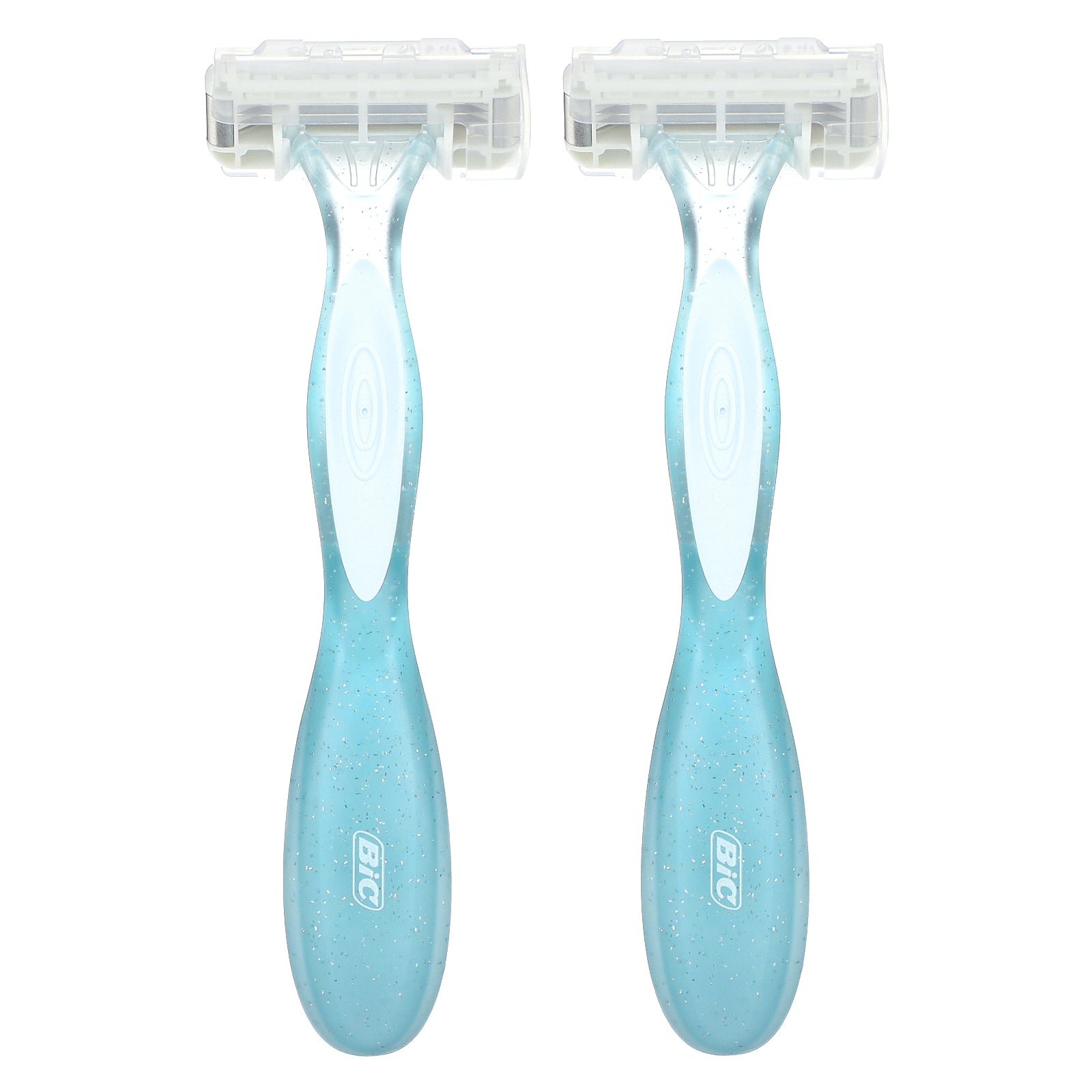 Shaving shouldn't be frustrating, so the BIC EasyRinse women's razor for shaving makes it easier to tame any unwanted fuzz, even long or coarse hair. This slim portable razor can also slip easily into travel kits or gym bags for a fantastic shave — whenever, wherever. Plus, the shimmery glitter handle adds a touch of glam to your beauty routine. Experience breakthrough technology at a price you are sure to love.