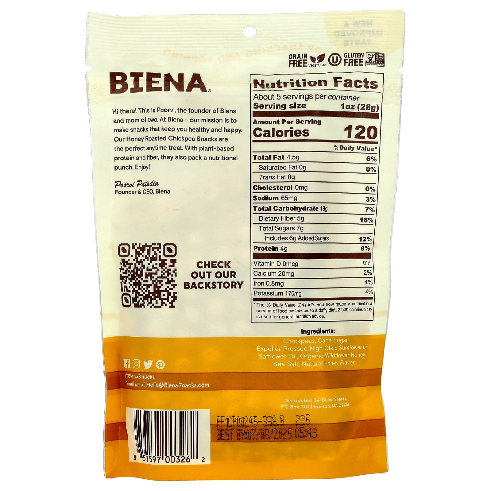 Hi there! This is Poorvi, the founder of Biena and mom of two. At Biena - our mission is to make snacks that keep you healthy and happy. Our Honey Roasted Chickpea Snacks are the perfect anytime treat. With plant-based protein and fiber, they also pack a nutritional punch. Enjoy!
