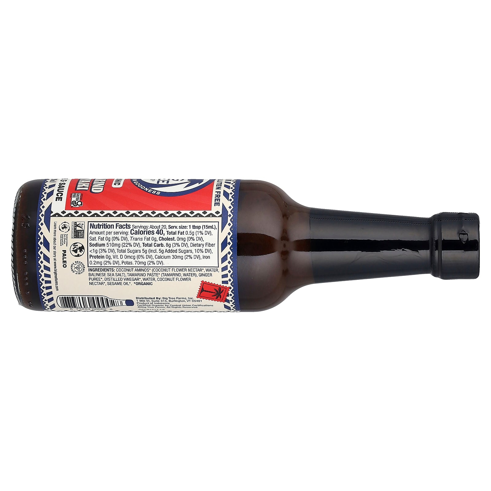 Coconut aminos* (coconut flower nectar *, water, balinese sea salt), tamarind paste* (tamarind, water), ginger puree *, distilled vinegar *, water, coconut flower nectar *, sesame oil *.