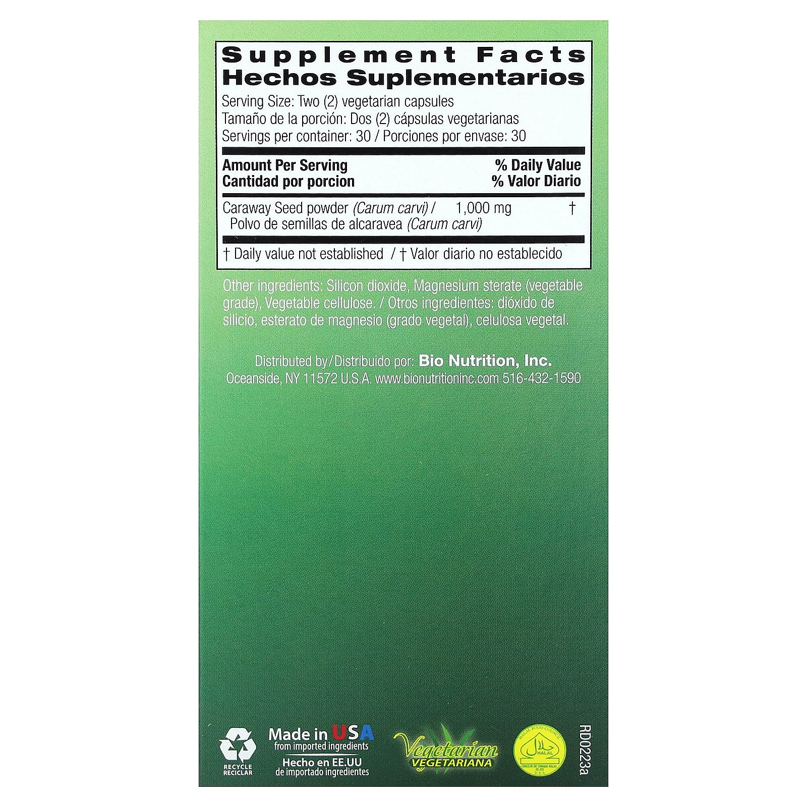 Caraway seeds may help support Occasional intestinal stress. Bio Nutrition uses the finest quality Caraway Seed powder in an easy to digest vegetarian capsule.