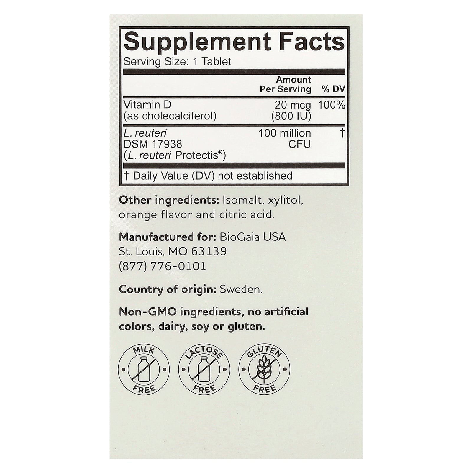 BioGaia® Protectis® KIDS tabs Immune Active is a dietary supplement containing the patented lactic acid bacterium Limosilactobacillus reuteri Protectis ® (L. reuteri DSM 17938) and vitamin D3 that contributes to the normal function of the immune system.