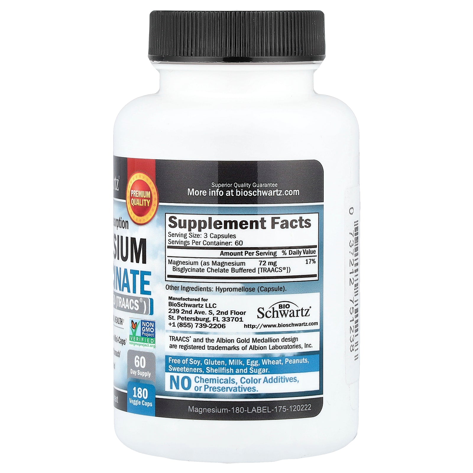 The Bisglycinate form of Magnesium used by BioSchwartz is gentle on the stomach and does not have the laxative effect commonly associated with other Magnesium forms.