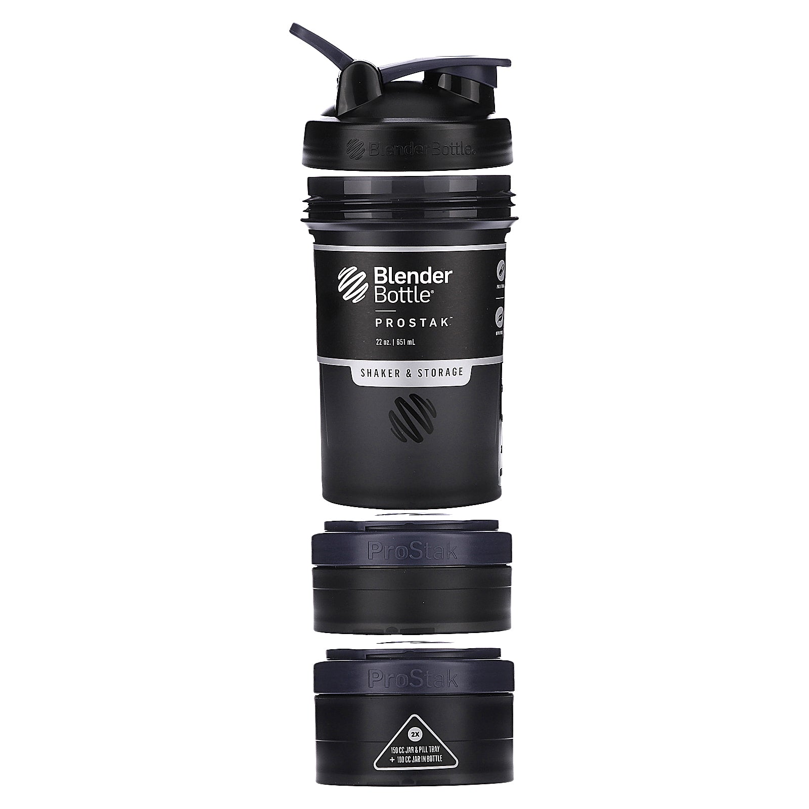 An all-in-one protein shaker and storage system for serious athletes. The BlenderBottle ProStak shaker combines a durable, leak-proof shaker bottle with interlocking storage containers, making it easier than ever to carry nutrition and supplements on the go.