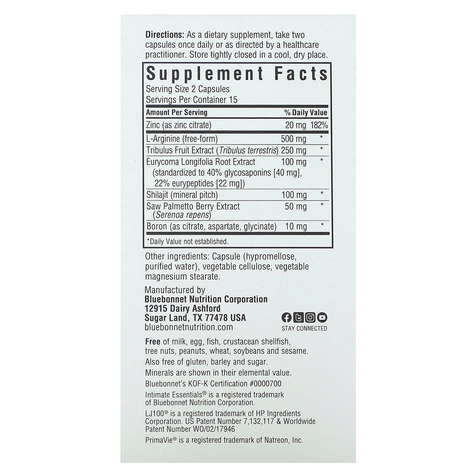 Bluebonnet's Intimate Essentials® For Him Testosterone & Libido Boost Vegetable Capsules are specially formulated to help stimulate a man's sexual chemistry by amplifying testosterone and libido levels.