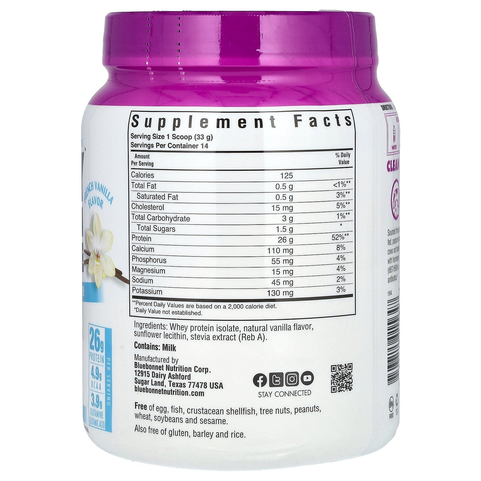 Whey protein isolate, natural vanilla flavor, sunflower lecithin, stevia extract (reb A).