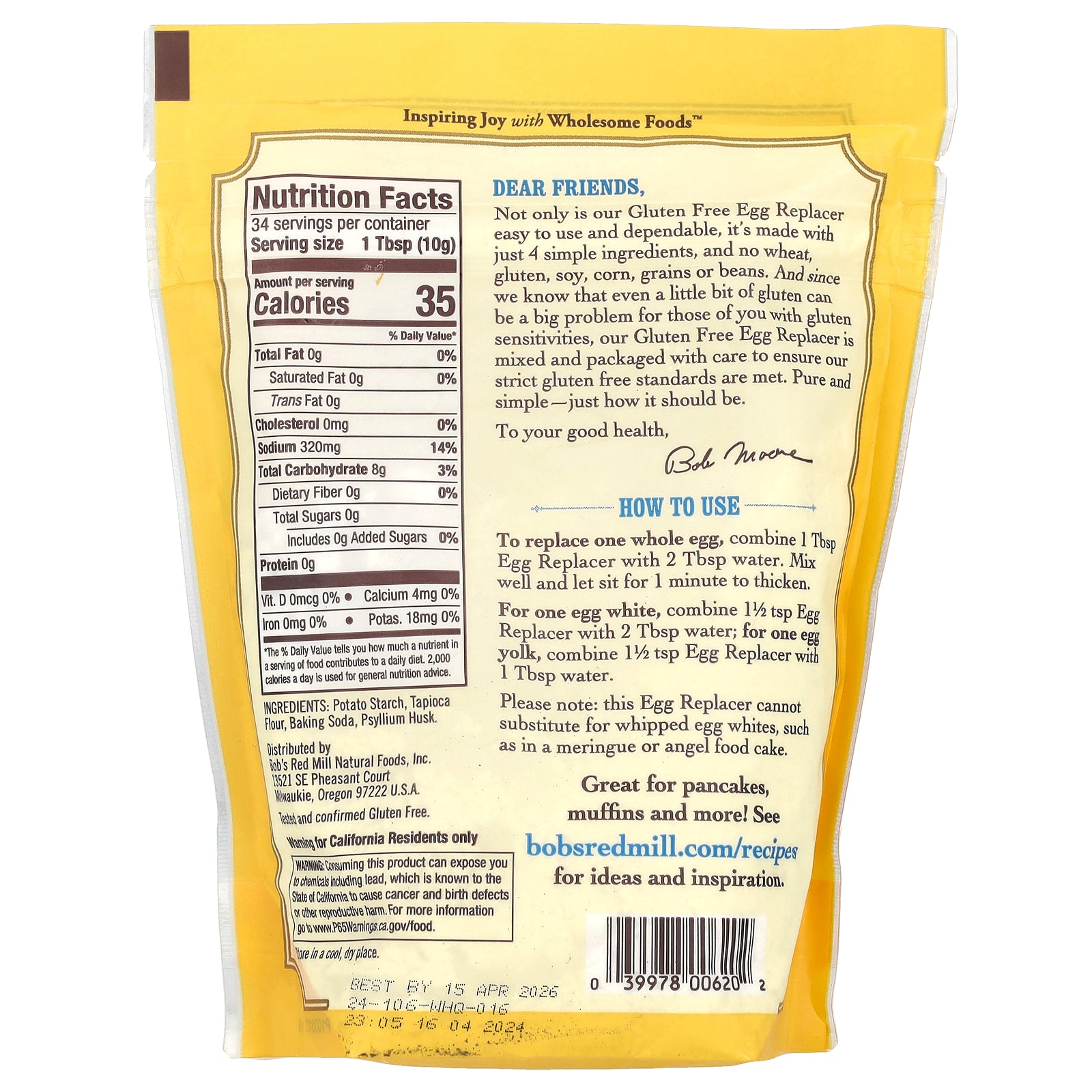 Not only is our Gluten Free Egg Replacer easy-to-use and dependable, it's made with only 4 simple ingredients, and no wheat, gluten, soy, corn, grains or beans. And since we know that even a little bit of gluten can be a big problem for those of you with gluten sensitivities, our Gluten Free Egg Replacer is mixed and packaged in our dedicated gluten free facility and batch tested in our quality control laboratory. Pure and simple - just how it should be.