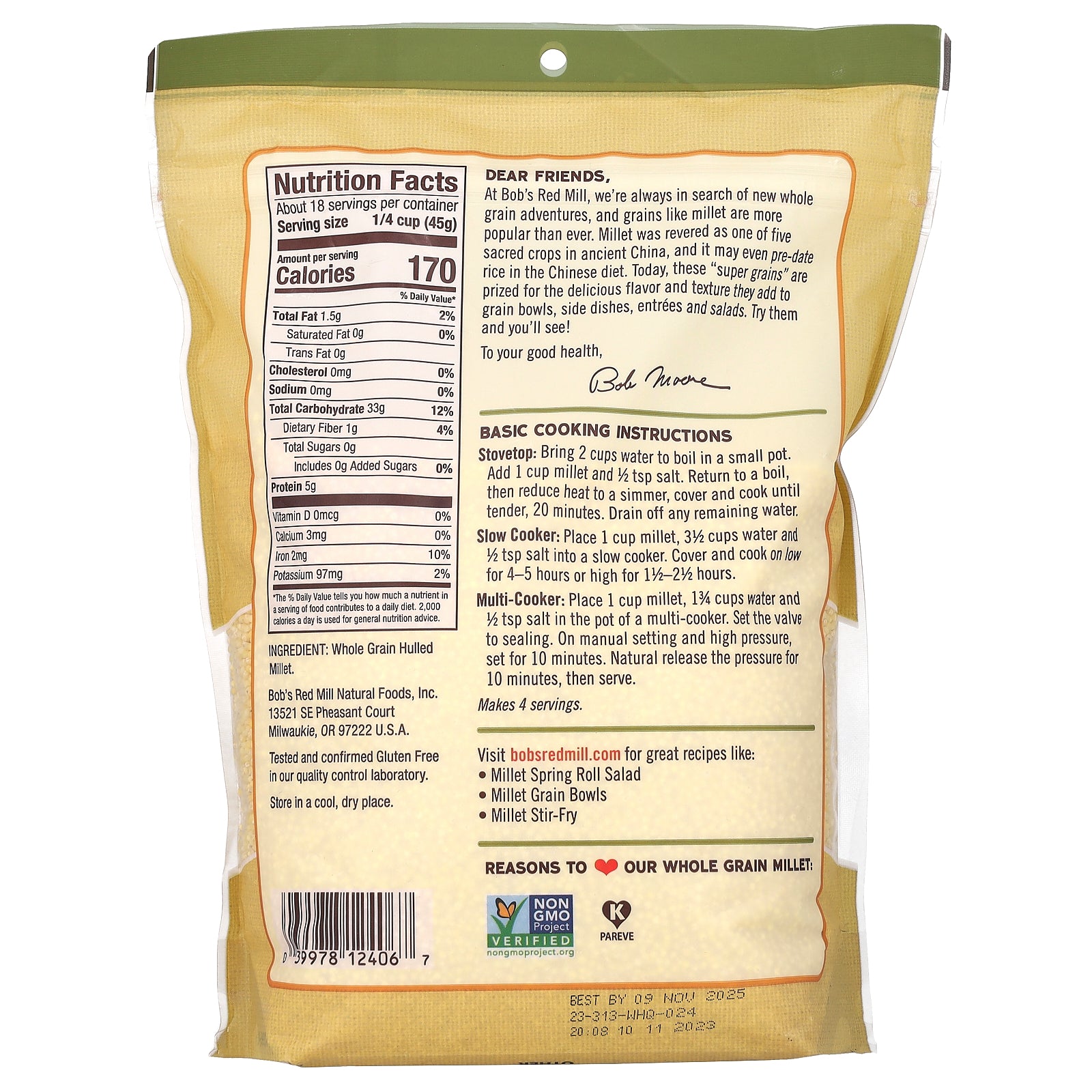 At Bob's Red Mill, we're always in search of new whole grain adventures, and grains like millet are more popular than ever. Millet was revered as one of five sacred crops in ancient China, and it may even pre-date rice in the Chinese diet. Today, these "super grains" are prized for the delicious flavor and texture they add to grain bowls, side dishes, entrees and salads. Try them and you'll see!