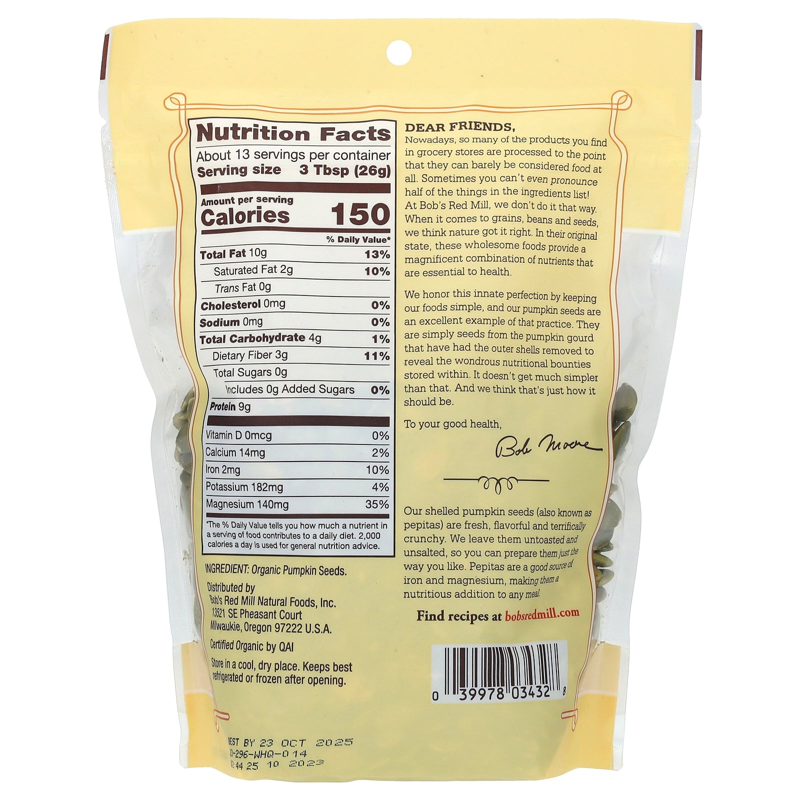 Our shelled pumpkin seeds (also known as pepitas) are fresh, flavorful and terrifically crunchy. We leave them untoasted and unsalted, so you can prepare them just the way you like. Pepitas are a good source of iron and magnesium, making them a nutritious addition to any meal.