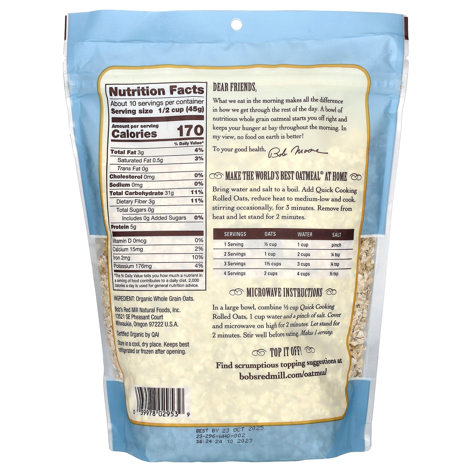 Our Quick Cooking Rolled Oats are milled from the highest quality farm-fresh oats in the world. Each oat is rolled thin to shorten the cooking time, so a tasty bowl of whole grain oatmeal is just minutes away.