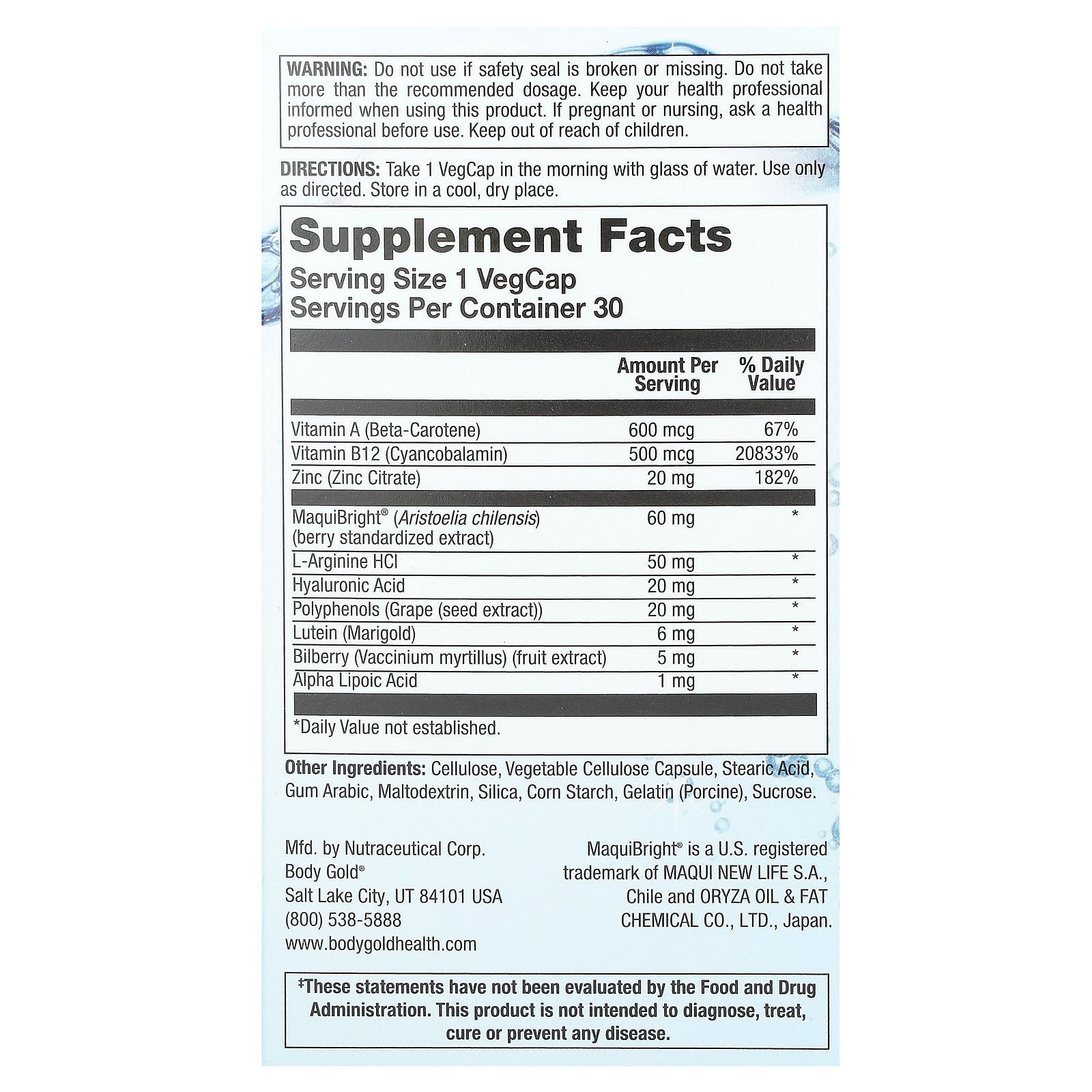 | MaquiBright® (Aristotelia chilensis) (berry standardized extract) | 60 mg | * |