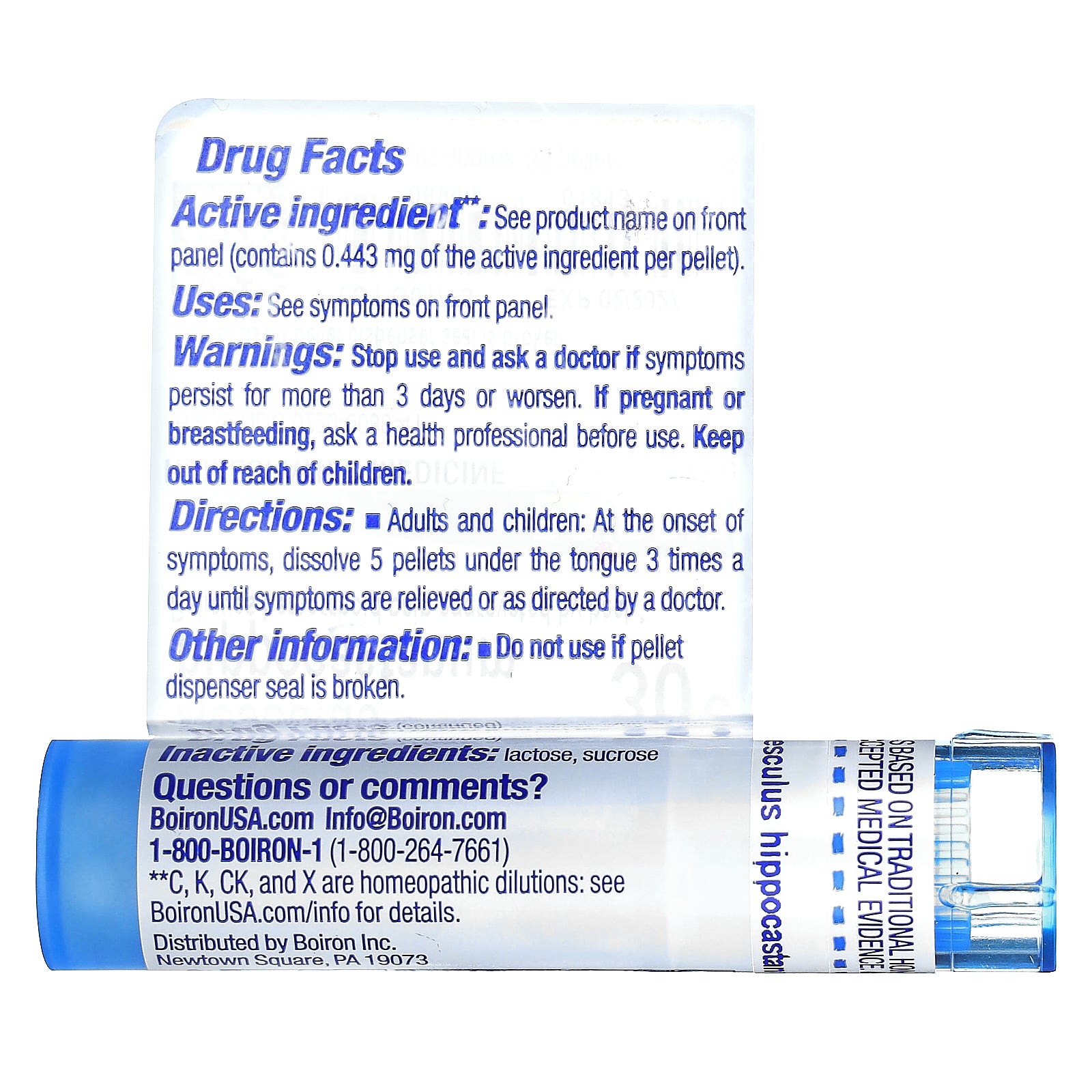 | Active Ingredient**: Aesculus Hippocastanum 30C (contains 0.443 mg of the active ingredient per pellet) |