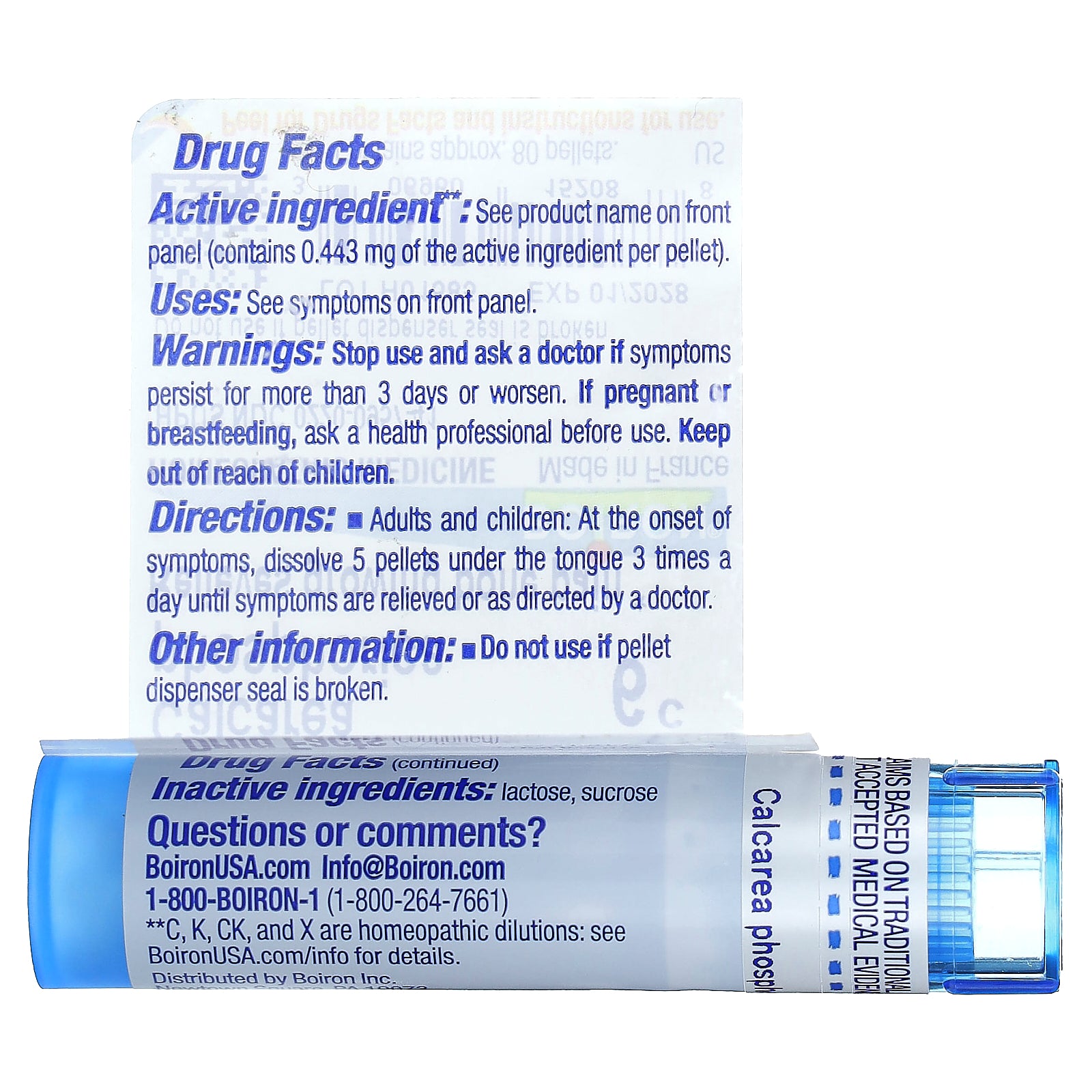 | Active Ingredient**: Calcarea Phosphorica 6C (contains 0.443 mg of the active ingredient per pellet) |