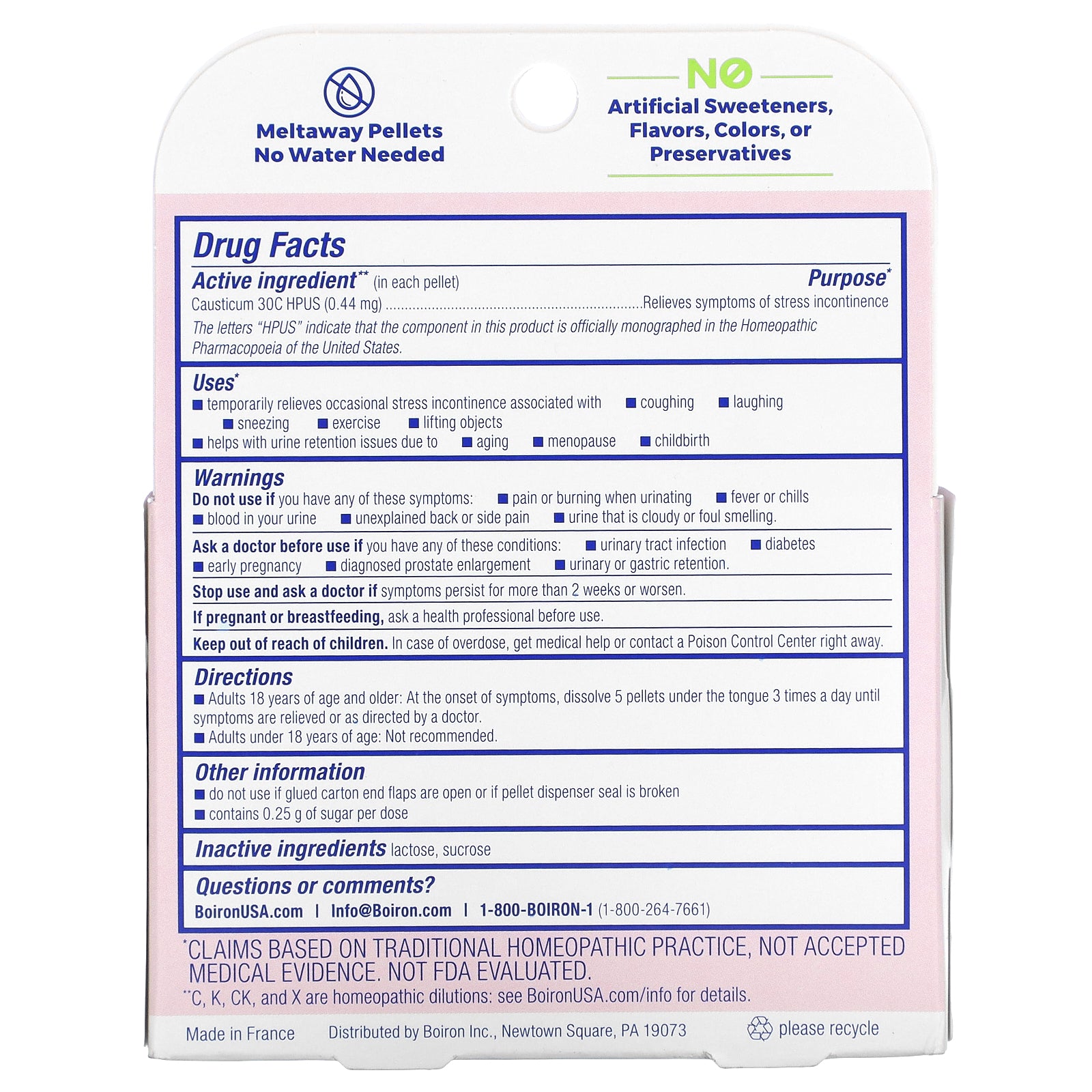 | Causticum 30C HPUS (0.44 mg) | Relieves symptoms of stress incontinence |