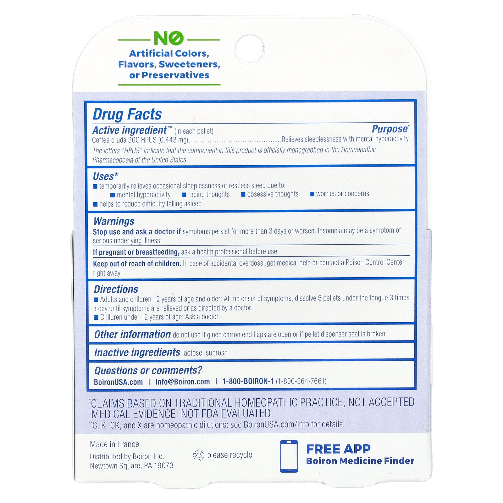 | Coffea cruda 30C HPUS (0.443 mg) | Relieves sleeplessness with mental hyperactivity |