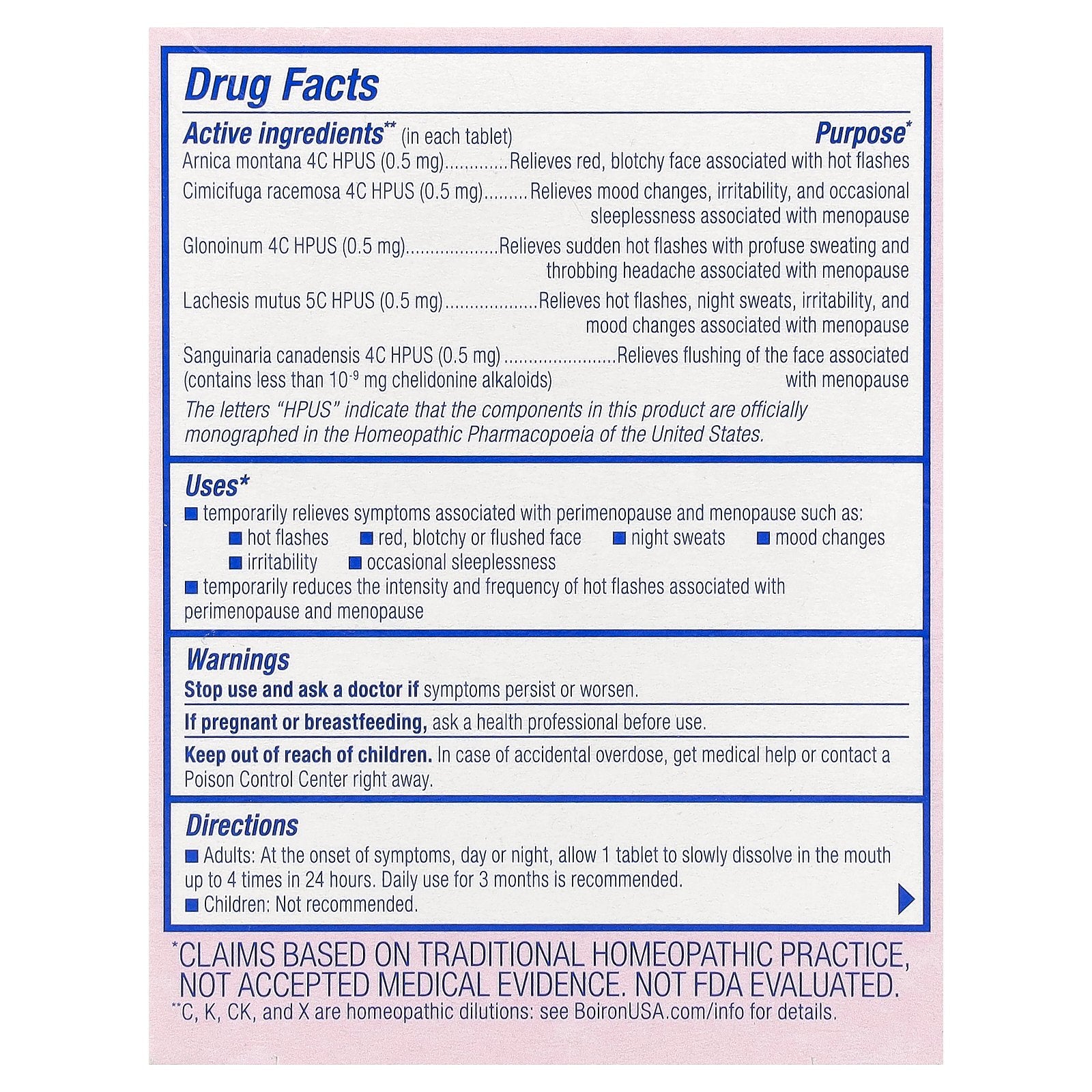 Relieves sudden hot flashes with profuse sweating and throbbing headache associated with menopause |