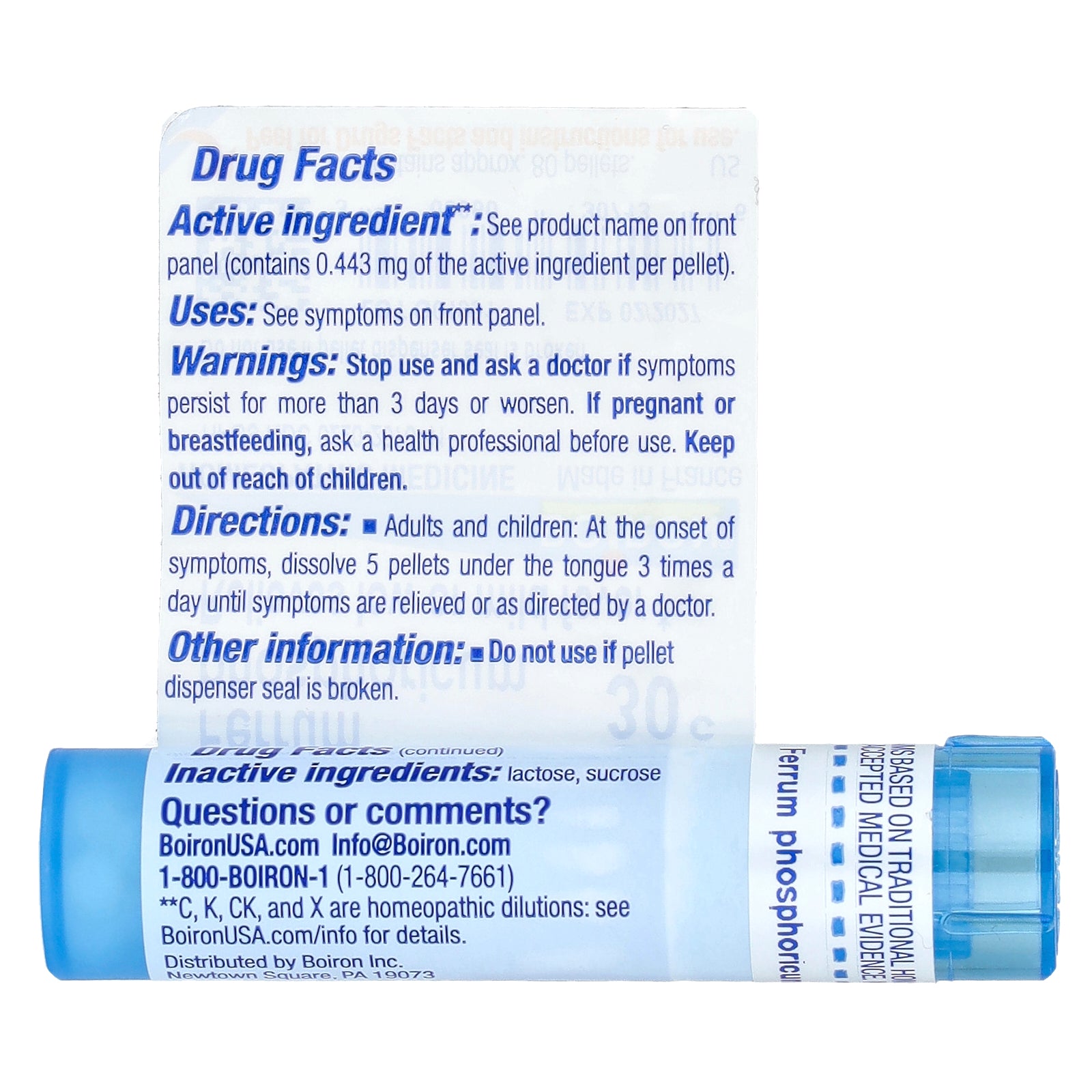 Boiron, Ferrum Phosphoricum, 30C, Mild Fever Relief, Approx 80 Pellets