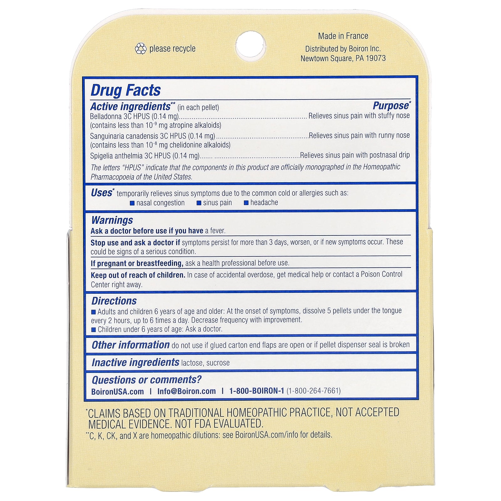 | Spigelia anthelmia 3C HPUS (0.14mg) | Relieves sinus pain with postnasal drip |