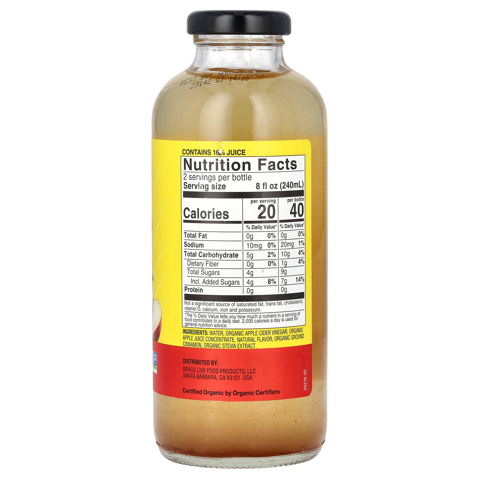 Water, organic apple cider vinegar, organic apple juice concentrate, natural flavor, organic ground cinnamon, organic stevia extract.