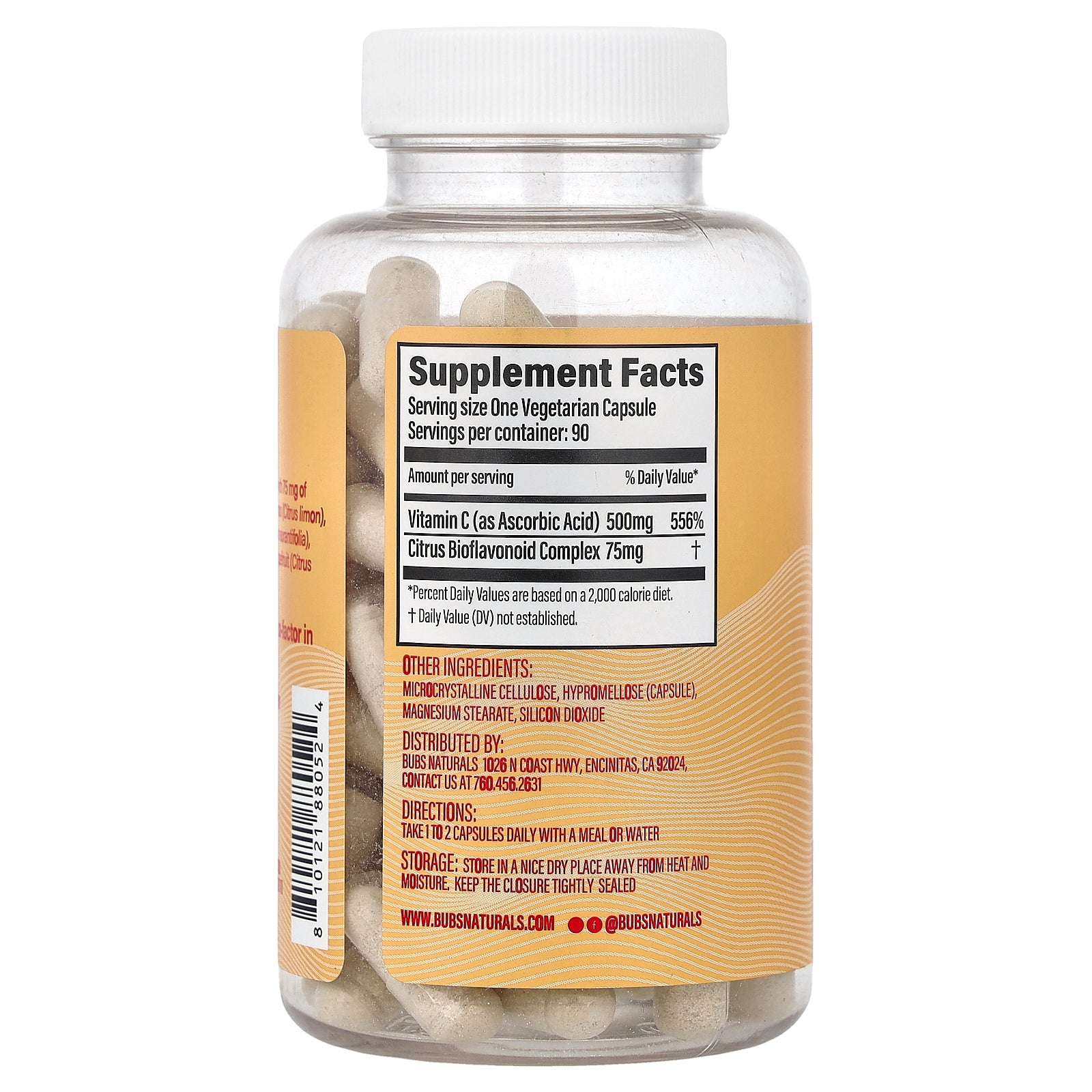 500 mg of Ultra-pure ascorbic acid with 75 mg of citrus flavonoids extracted from lemon (citrus limon), orange (citrus sinensis), lime (citrus aurantifolia), tangerine (citrus reticulata), and grapefruit (citrus paradisi).