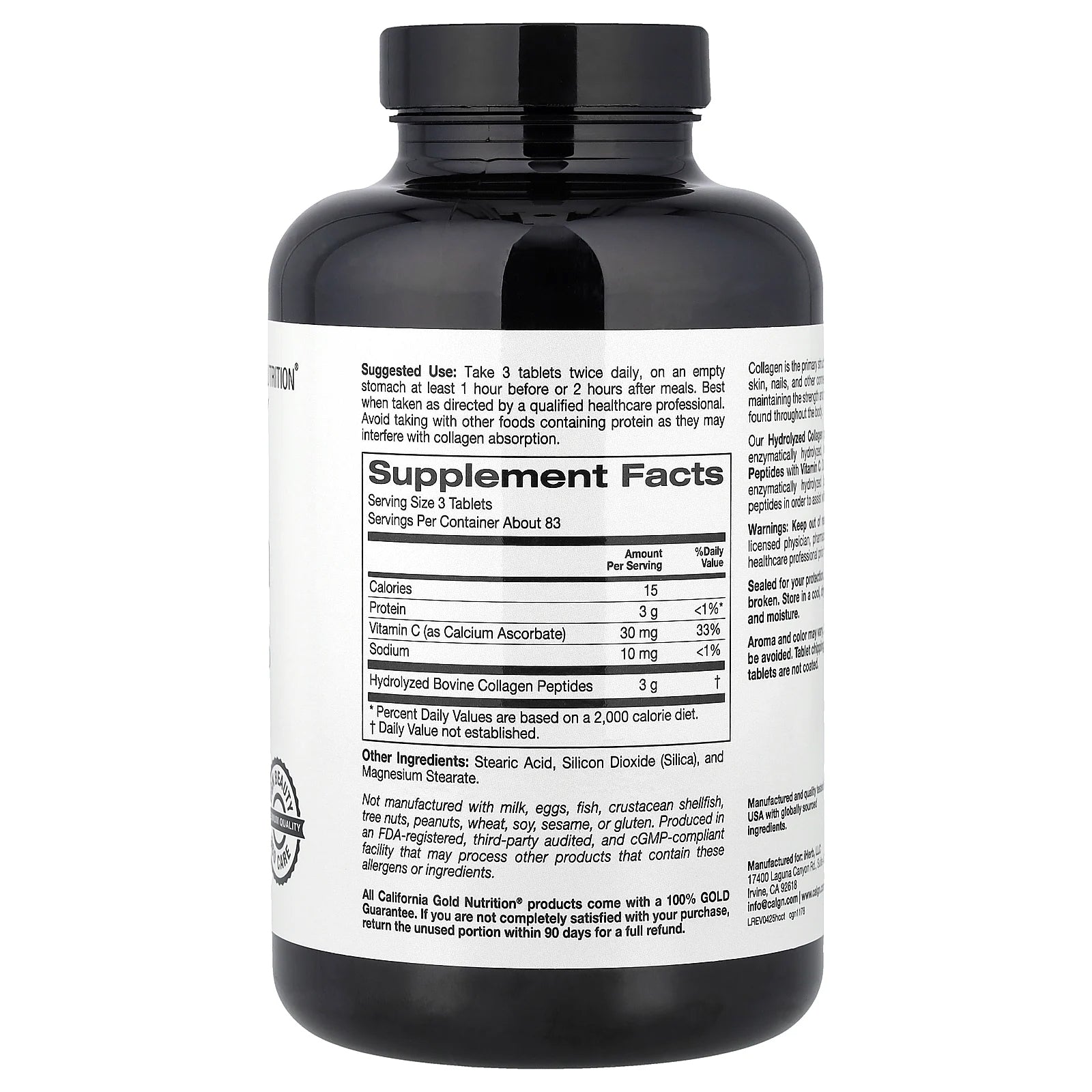 California Gold Nutrition® Hydrolyzed Collagen + Vitamin C contains unique, enzymatically hydrolyzed, low molecular weight Collagen Peptides with Vitamin C. This product provides the fundamental building blocks for support of healthy hair, skin, nails, joints & bones.* Our specially processed Collagen is enzymatically hydrolyzed (broken down) into amino acid peptides in order to assist with absorption/bioavailability.