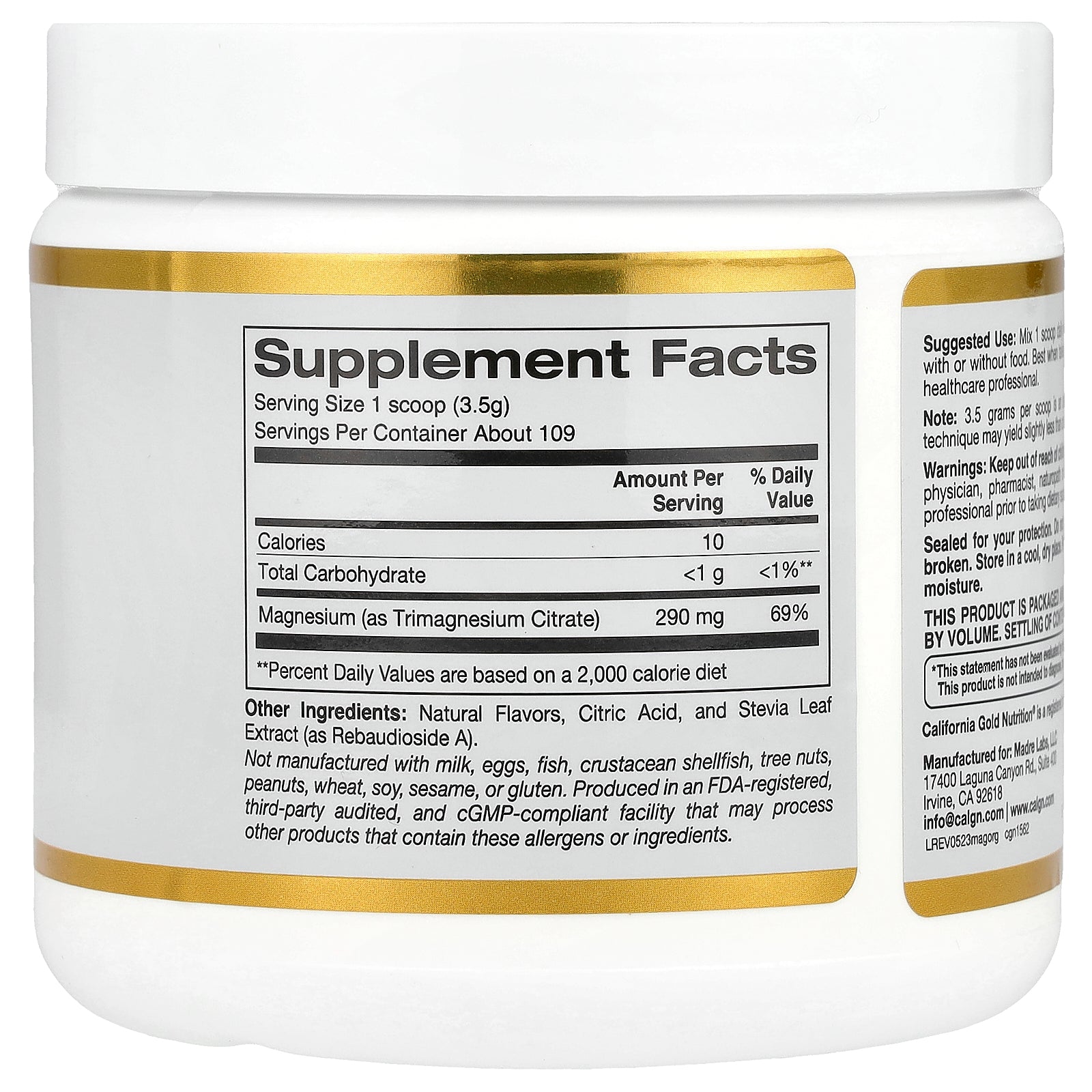 California Gold Nutrition® Magnesium Powder features Trimagnesium Citrate. Because of its effect on muscle contraction, magnesium can help to relax the body and support a calm, restful state.*