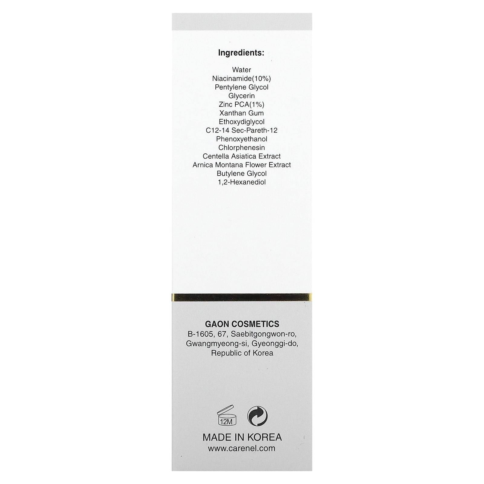 Water niacinamide(10%) pentylene glycol glycerin zinc pca(1%) xanthan gum ethoxydiglycol c12-14 sec-pareth-12 phenoxyethanol chlorphenesin centella asiatica extract arnica montana flower extract butylene glycol 1,2-hexanediol.