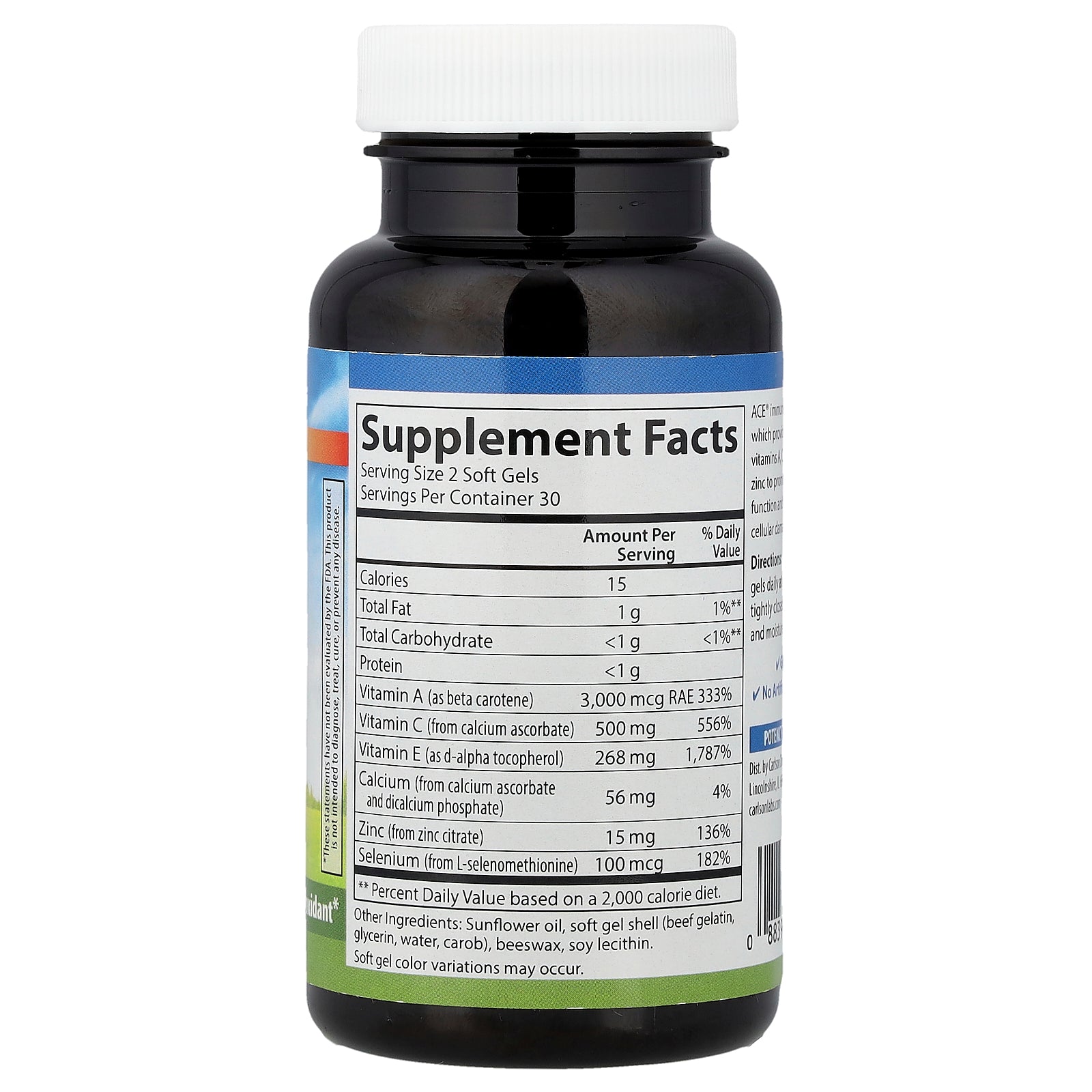 ACE® immune support with ACES+Zn®, which provides the powerful antioxidant vitamins A, C, and E, plus selenium and zinc to promote healthy immune system function and to protect our body from cellular damage caused by free radicals.