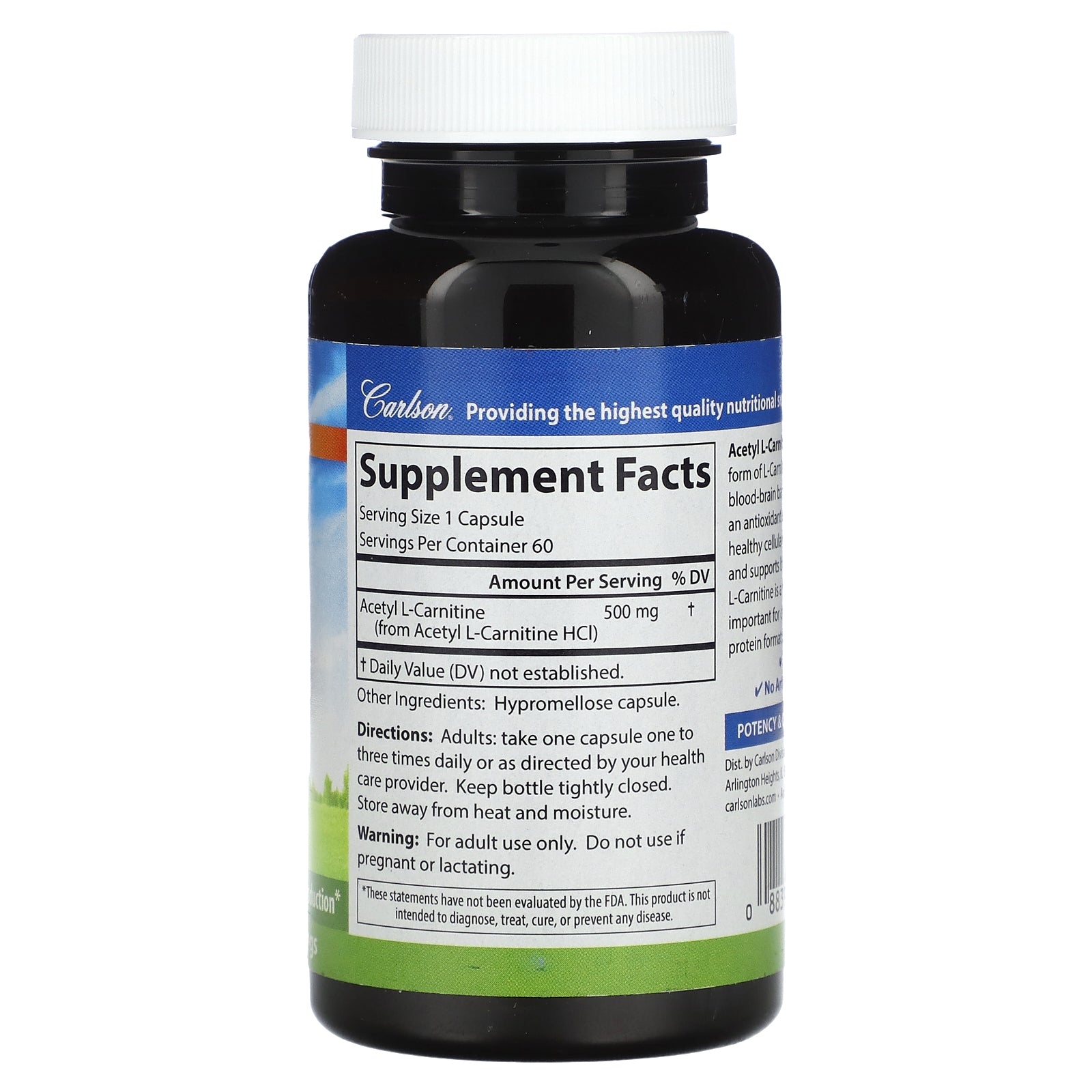 Carlson, Acetyl L-Carnitine, 500 mg, 60 Vegetarian Capsules