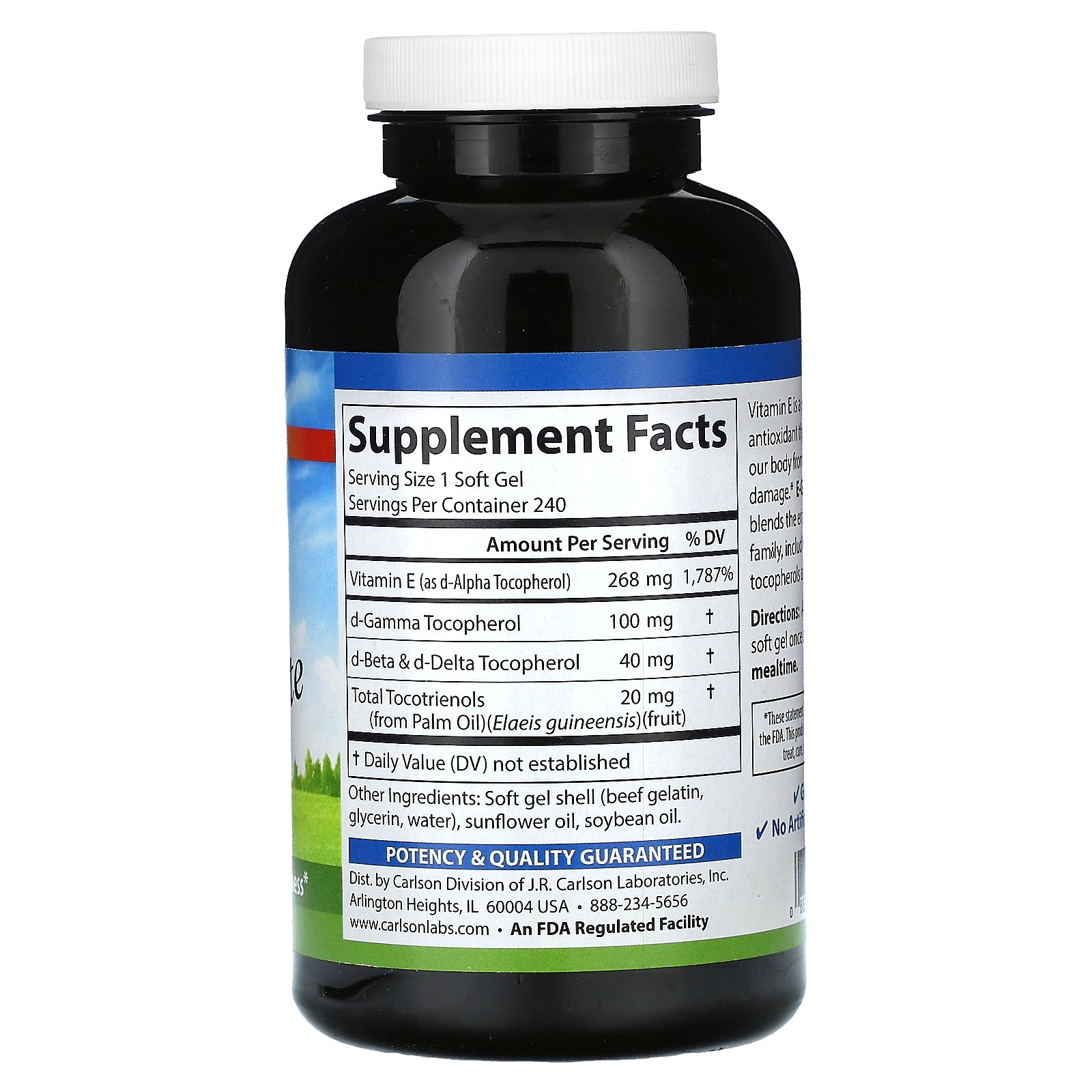 Carlson, E-Gems Elite, Vitamin E with Tocopherols & Tocotrienols, 268 mg (400 IU), 240 Soft Gels