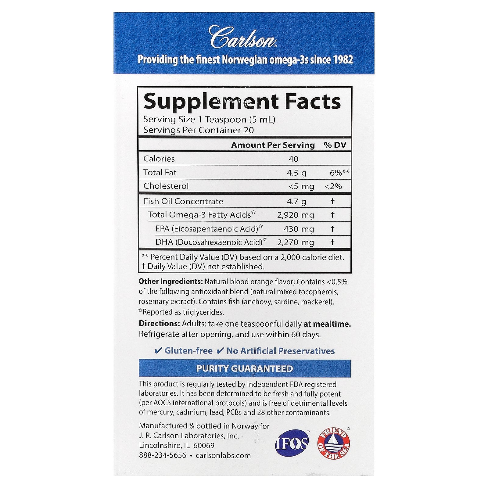 Purity Guaranteed: This product is regularly tested by independent FDA registered laboratories. It has been determined to be fresh and fully potent (per AOCS international protocols) and is free of detrimental levels of mercury, cadmium, lead, PCBs, and 28 other contaminants.