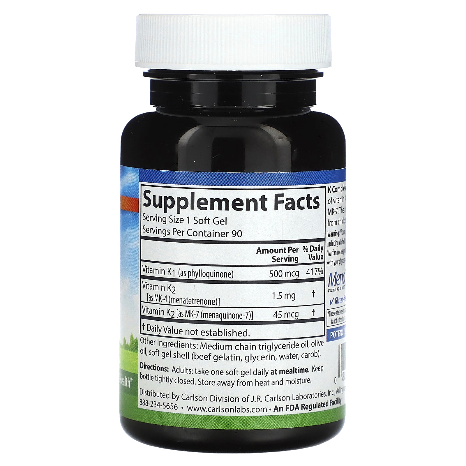 | Vitamin K1 (as phylloquinone) | 500 mcg | 417% |