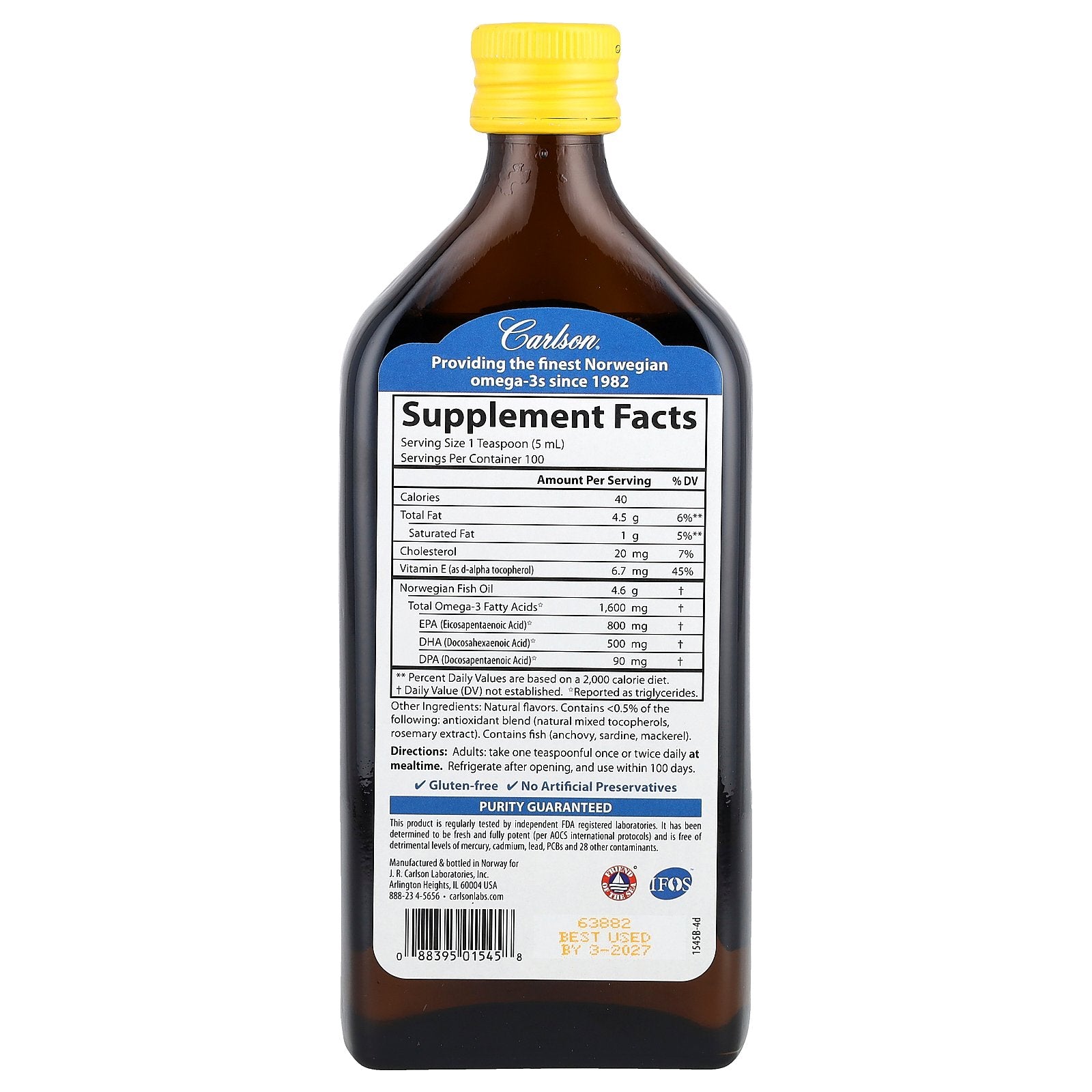 Carlson, Norwegian, The Very Finest Fish Oil, Natural Lemon , 16.9 fl oz (500 ml)