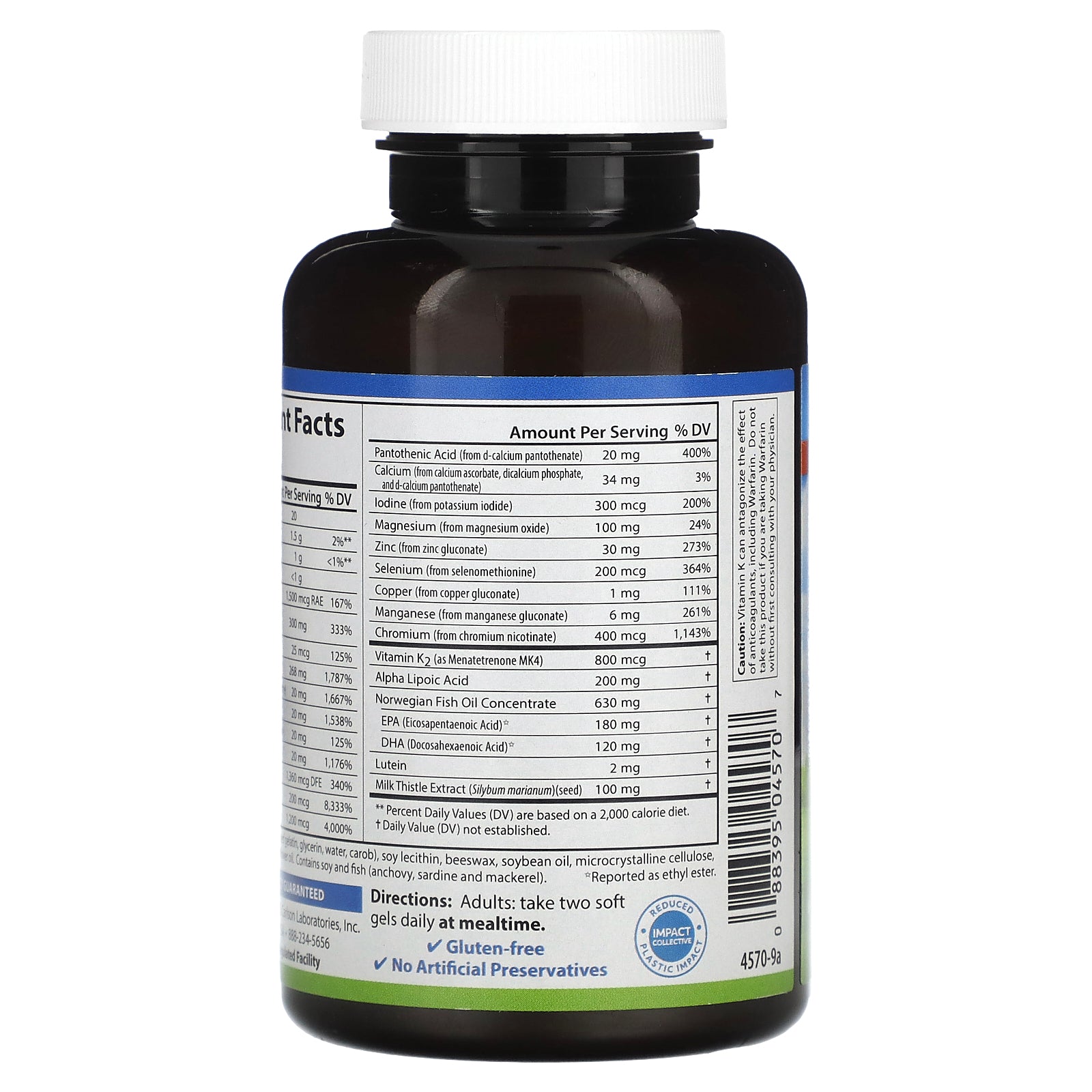 Soft gel shell (beef gelatin, water, carob), soy lecithin, beeswax, soybean oil, microcrystalline cellulose, medium chain triglyceride oil, sunflower oil.