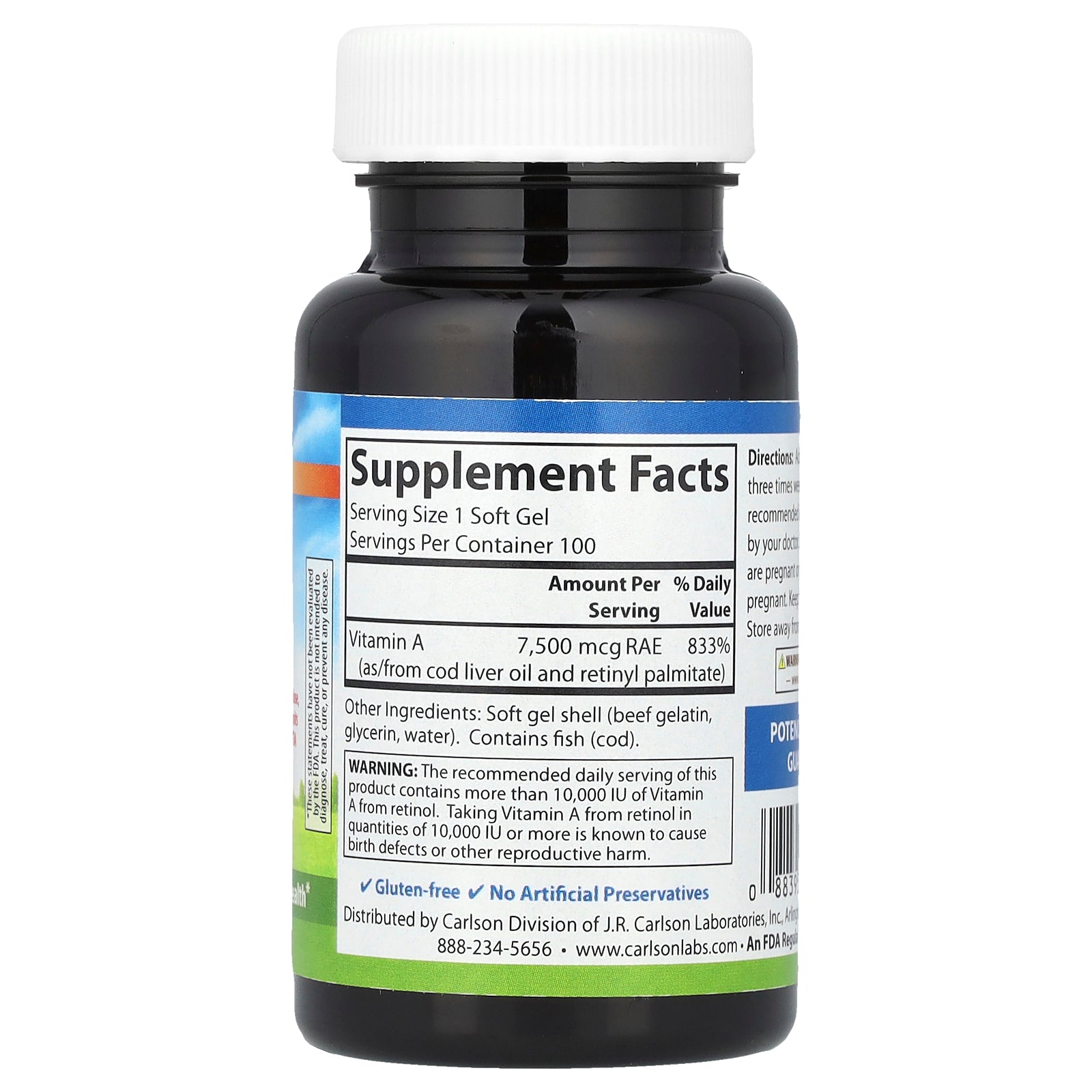 Carlson, Vitamin A, 7,500 mcg RAE (25,000 IU), 100 Soft Gels