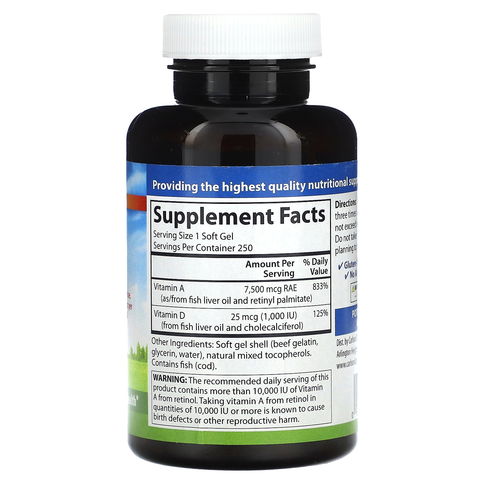| Vitamin A (as/from fish liver oil and retinyl palmitate) | 7,500 mcg RAE | 833% |