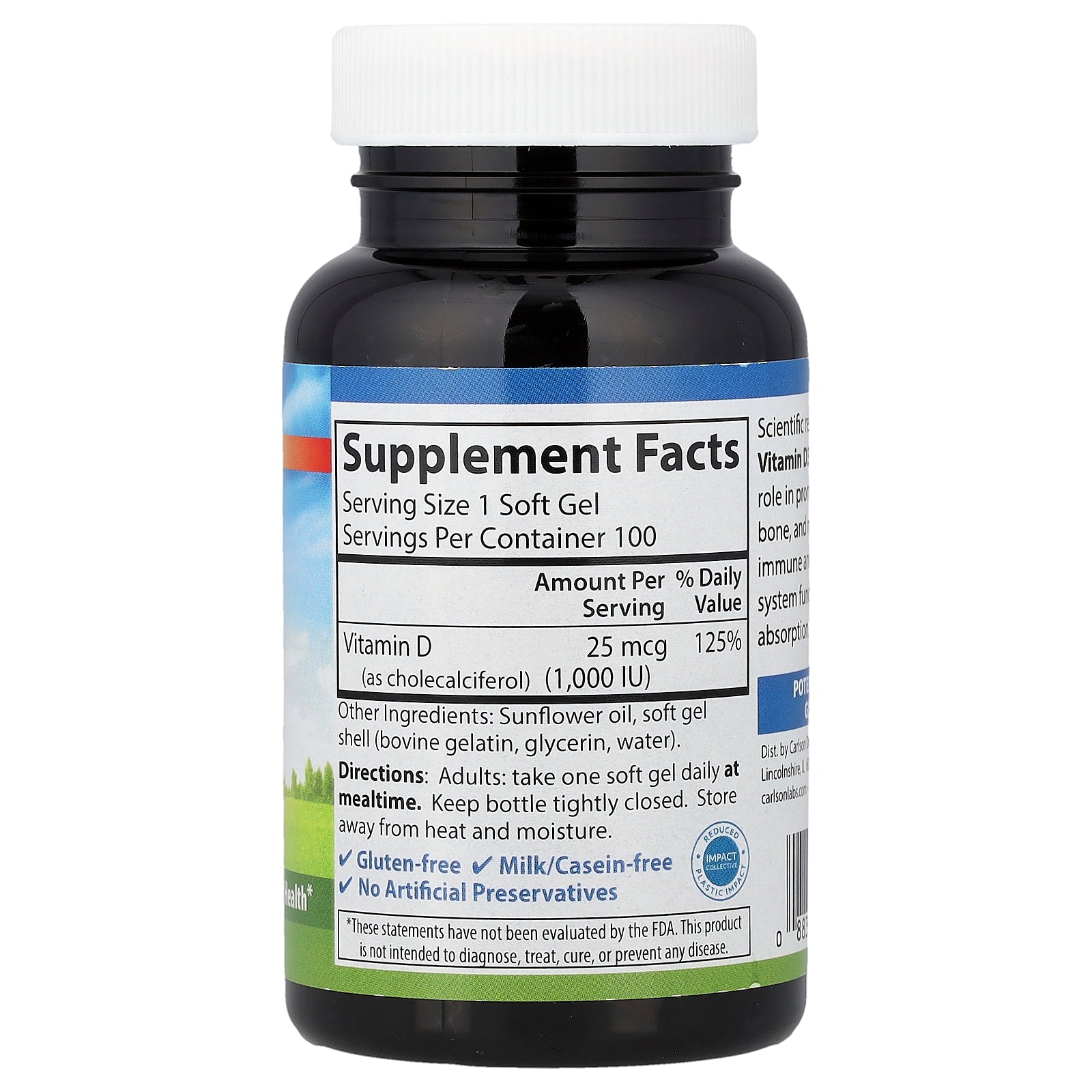 Carlson, Vitamin D3, 25 mcg (1,000 IU), 100 Soft Gels