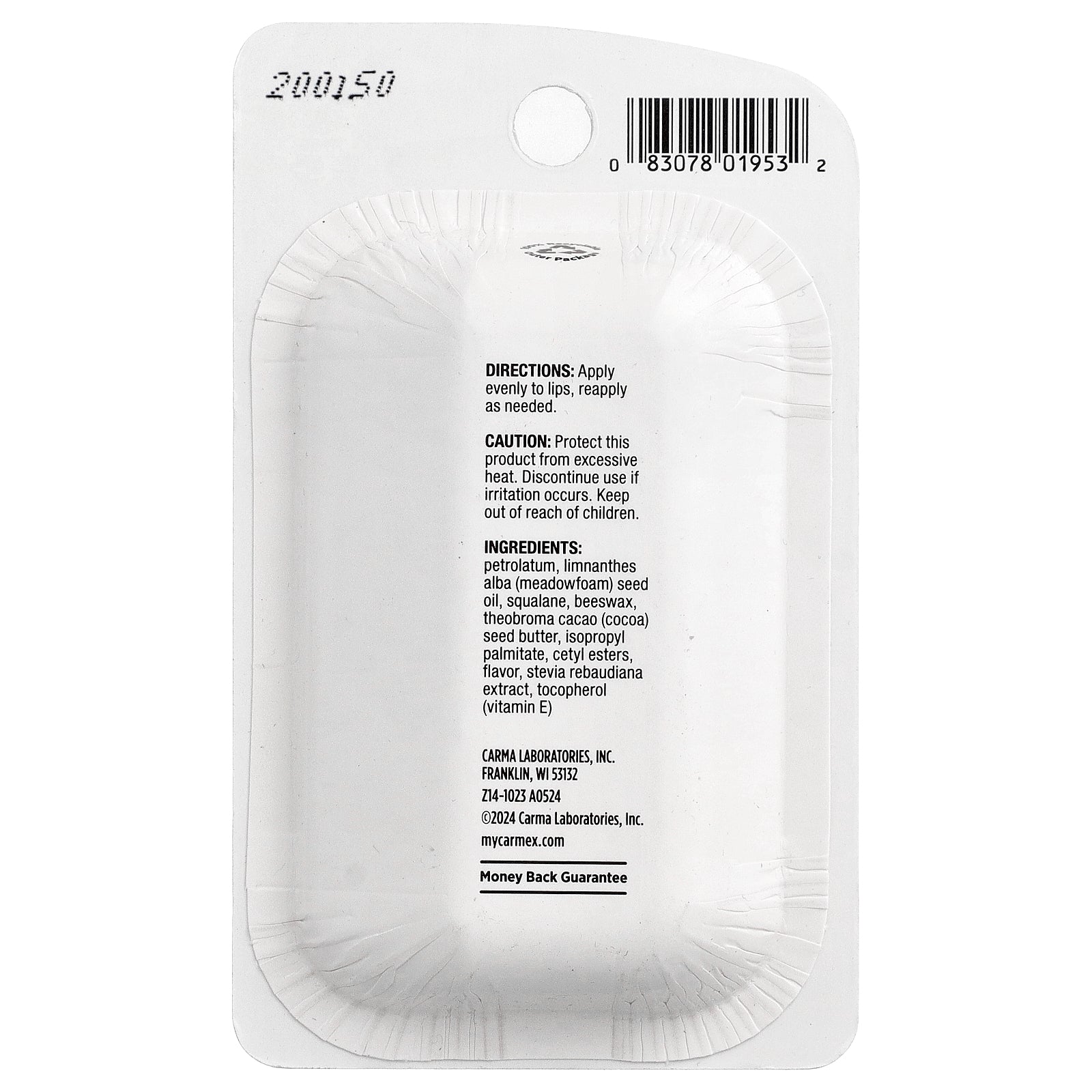 Petrolatum, limnanthes alba (meadowfoam) seed oil, squalane, beeswax, theobroma cacao (cocoa) seed butter, isopropyl palmitate, cetyl esters, flavor, stevia rebaudiana extract, tocopherol (vitamin E).
