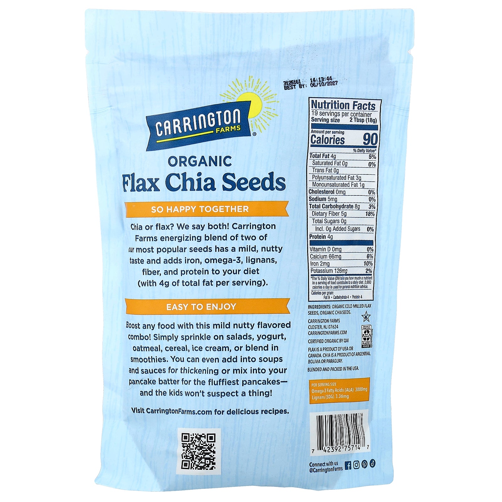 Chia or flax? We say both! Carrington Farms energizing blend of two of our most popular seeds has a mild, nutty taste and adds iron, omega-3, lignans, fiber, and protein to your diet (with 4 g of total fat per serving).