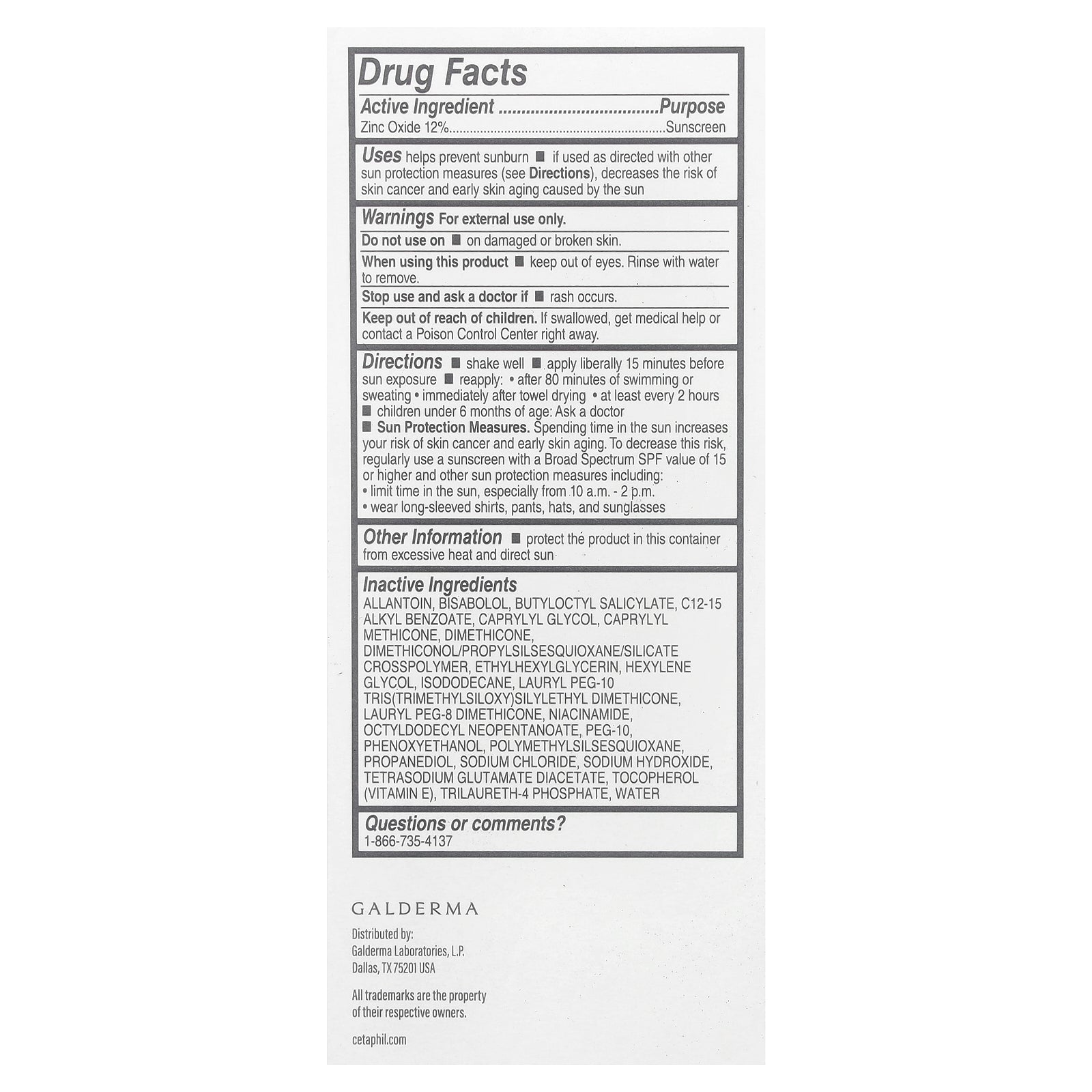 | Zinc oxide 12% | Sunscreen |