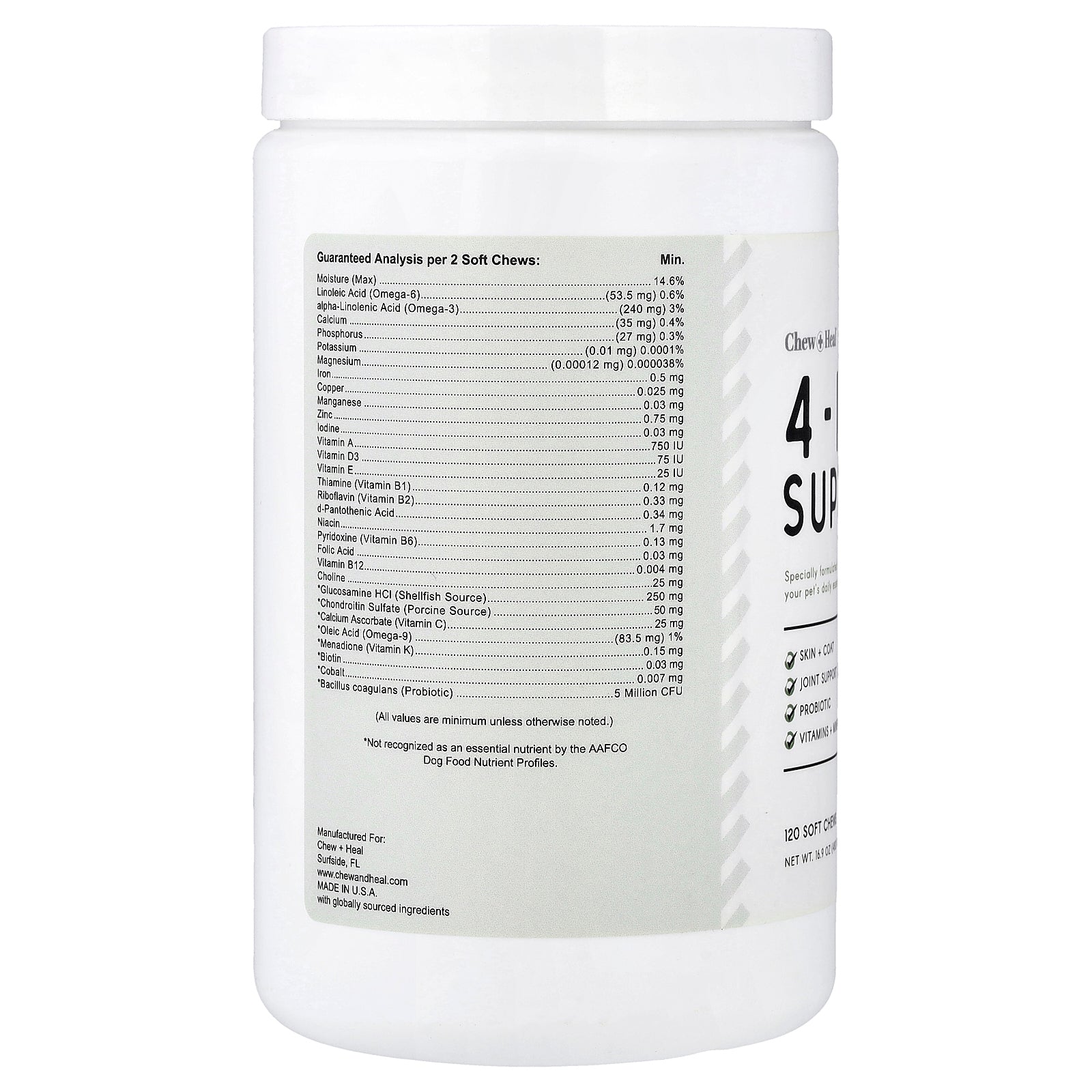 Brewers dried yeast, flaxseed, glycerin, dried potato product, lecithin, dried shellfish digest, natural flavoring, water, dicalcium phosphate, canola oil, maltodextrin, tapioca starch, vitamin E supplement, choline bitartrate, chondroitin sulfate, fructooligosaccharides, dried aspergillus oryzae fermentation product, dried aspergillus niger fermentation solubles, dried trichoderma longibrachiatum fermentation product, papaya, dried bacillus coagulans fermentation product, sorbic acid (a preservative), calcium ascorbate (source of vitamin C), mixed tocopherols (a preservative), vegetable oil, vitamin A palmitate, citric acid (a preservative), biotin, zinc sulfate, niacin supplement, ferrous sulfate, vitamin D3 supplement, pantothenic acid, menadione sodium bisulfite complex, riboflavin, vitamin B12 supplement, pyridoxine hydrochloride, thiamine mononitrate, manganese sulfate, potassium iodide, copper carbonate, folic acid, cobalt carbonate, magnesium stearate.