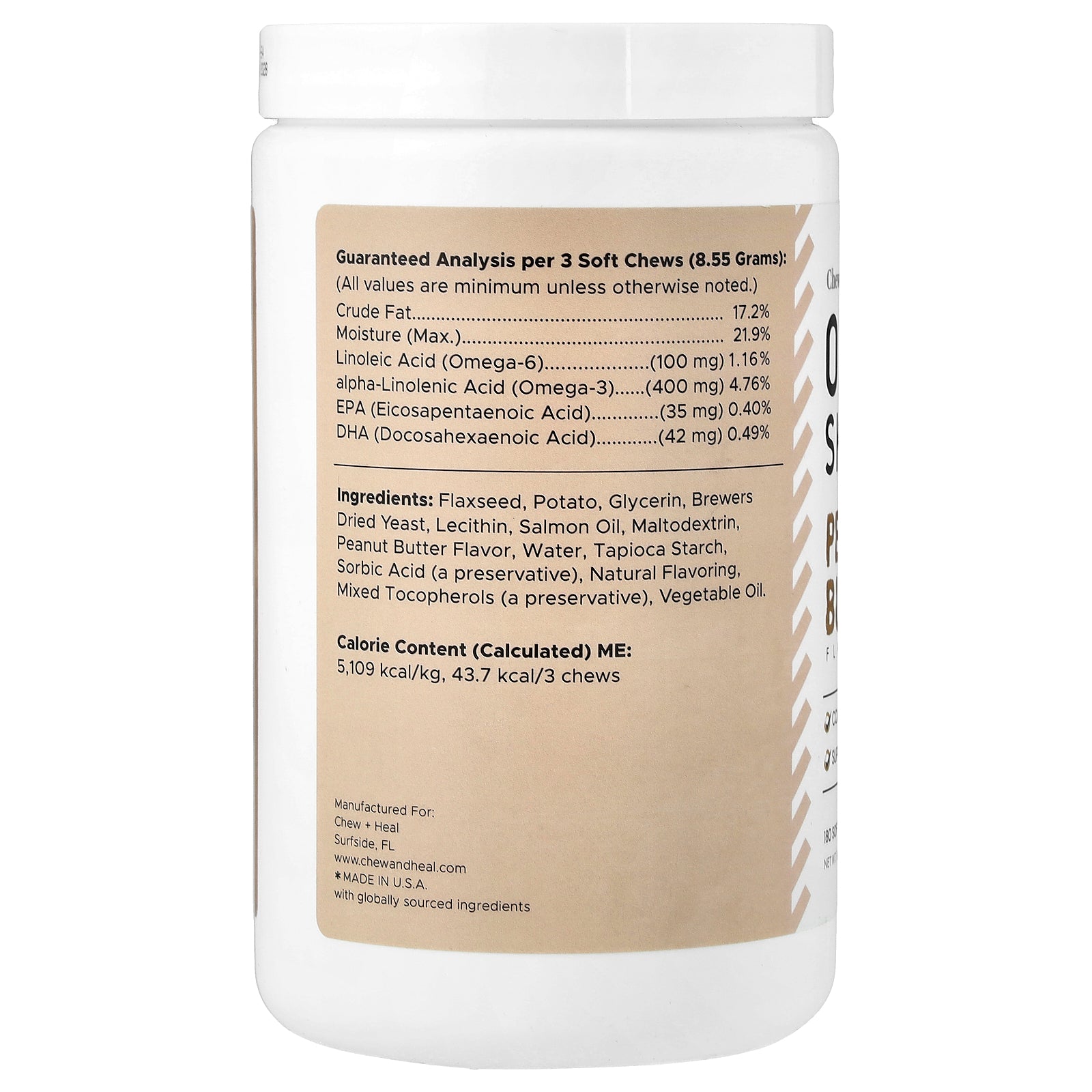 Flaxseed, potato, glycerin, brewers dried yeast, lecithin, salmon oil, maltodextrin, peanut butter flavor, water, tapioca starch, sorbic acid (a preservative), natural flavoring, mixed tocopherols (a preservative), vegetable oil.
