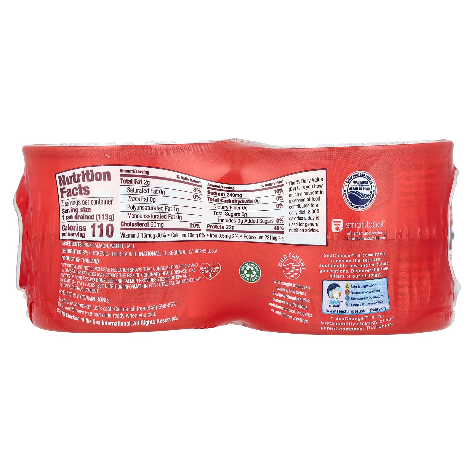 *Supportive but not conclusive research shows that consumption of EPA and DHA Omega-3 fatty acids may reduce the risk of coronary heart disease. One serving of skinless and boneless pink salmon provides 792 mg of EPA and DHA Omega-3 fatty acids. See nutrition information for total fat, saturated fat and cholesterol content.