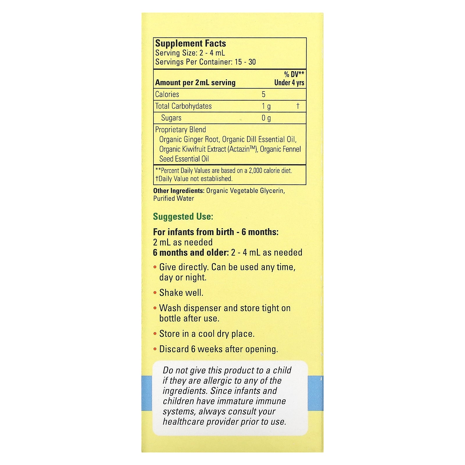 Do not give this product to a child if they are allergic to any of the ingredients. Since infants and children have immature immune systems, always consult your healthcare provider prior to use.