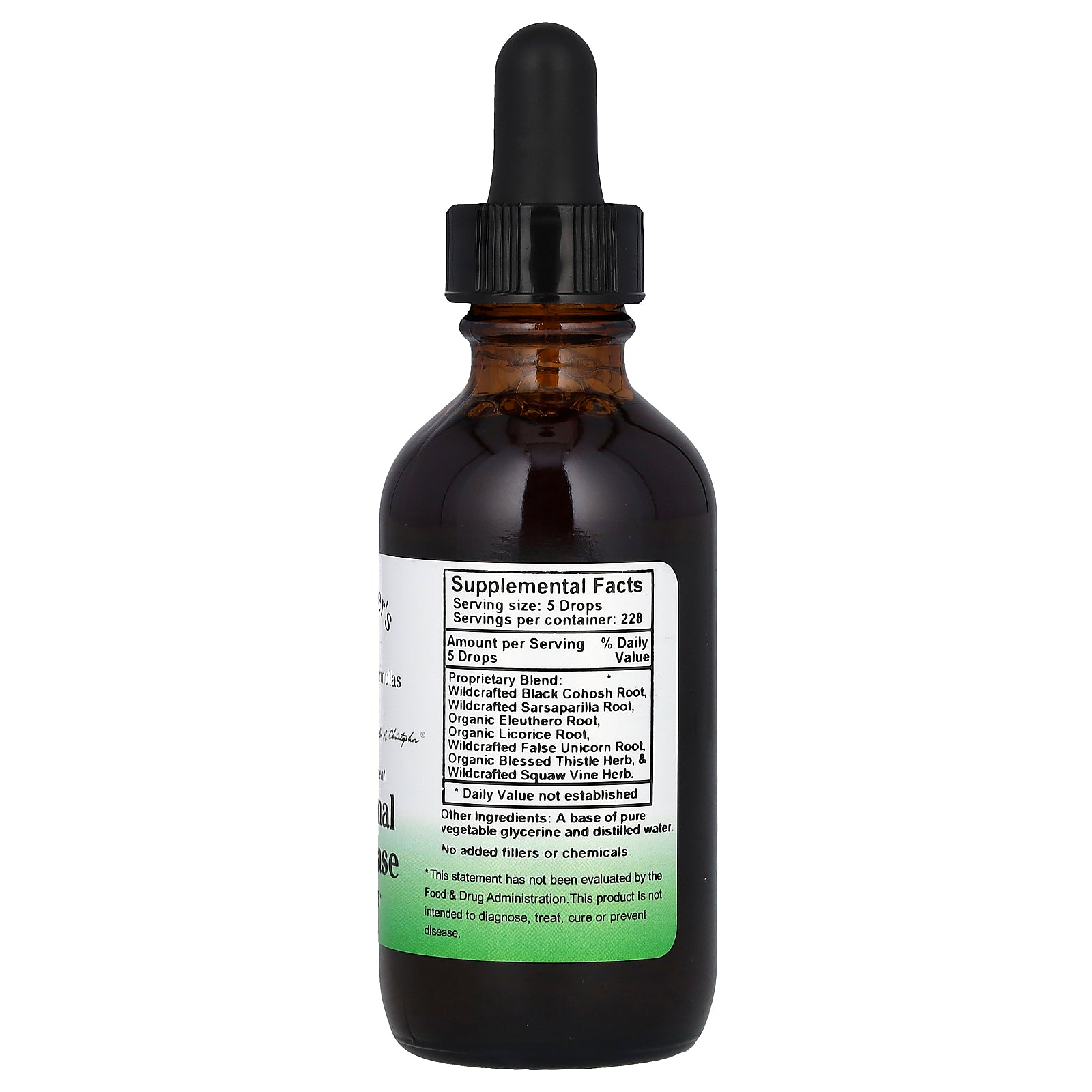 Proprietary Blend: Wildcrafted Black Cohosh Root, Wildcrafted Sarsaparilla Root, Organic Eleuthero Root, Organic Licorice Root, Wildcrafted False Unicorn Root, Organic Blessed Thistle Herb, & Wildcrafted Squaw Vine Herb. |