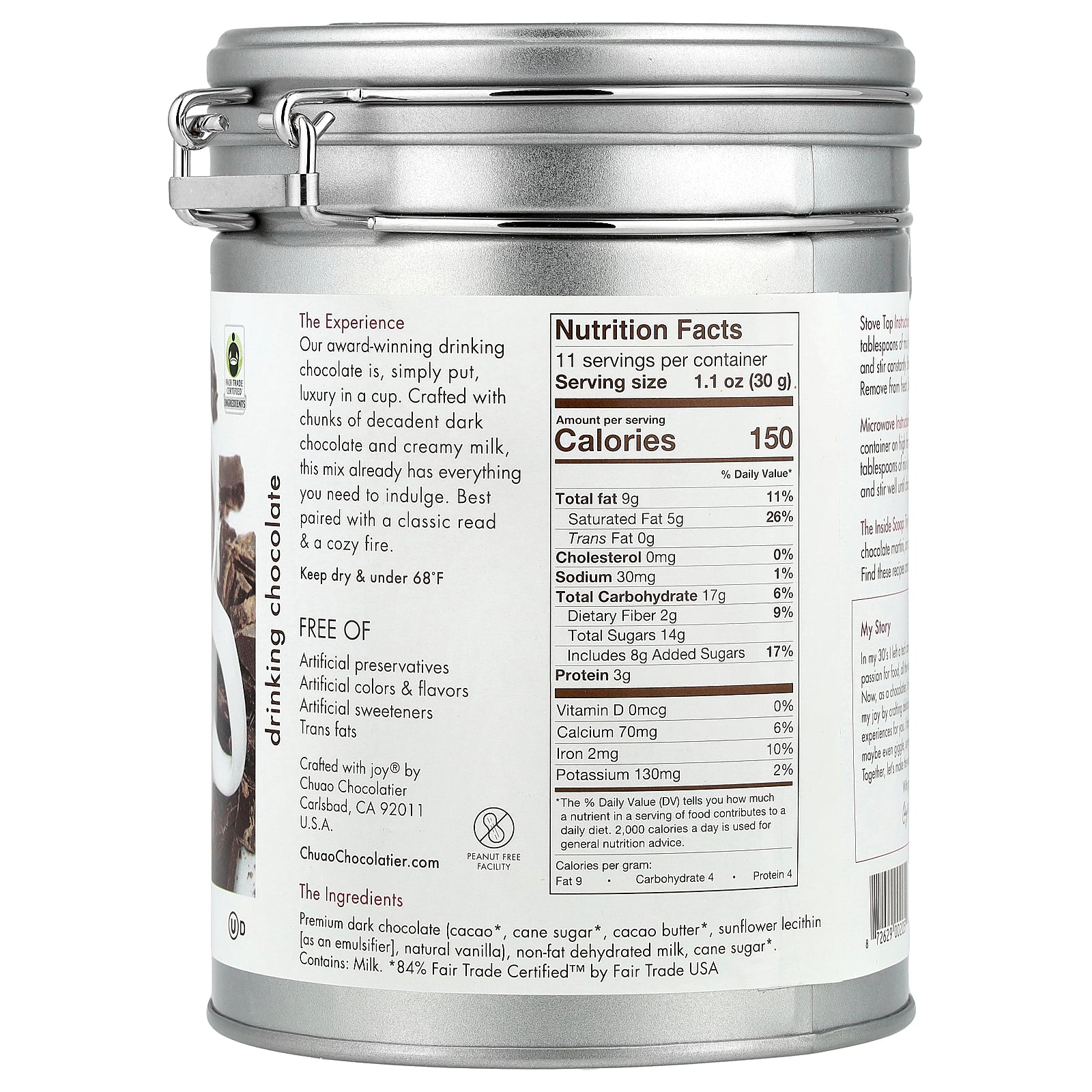Microwave Instructions: Heat 1/2 cup water in microwave safe container on high for approximately 90 seconds. Add 3 tablespoons of mix (or more for an even thicker consistency and stir well until chocolate chunks are melted. Serve and enjoy.